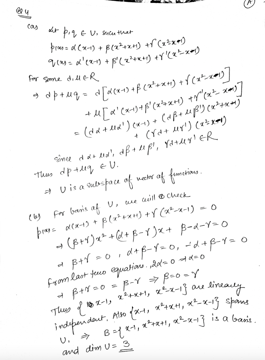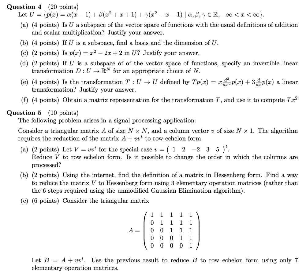 Question 4 (20 points) Let U = o(x) = a(x - 1) + B(x2 + x + 1) + r...