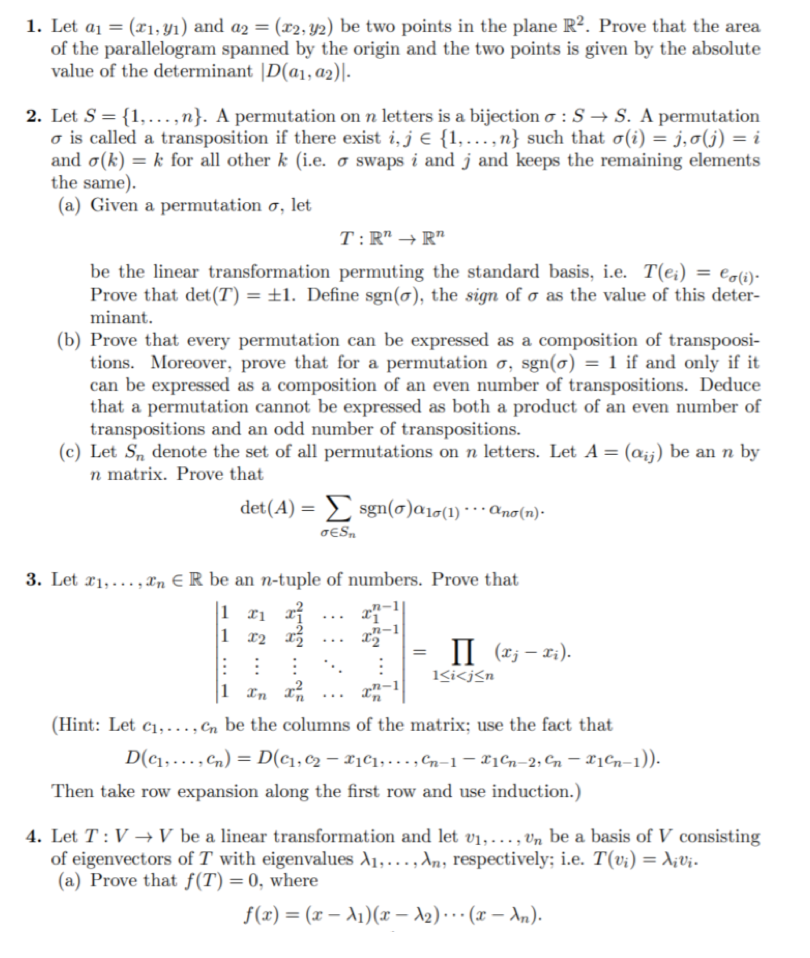 1. Let a1 = (x1,y1) and a2 = be two points in the plane R². Prove...
