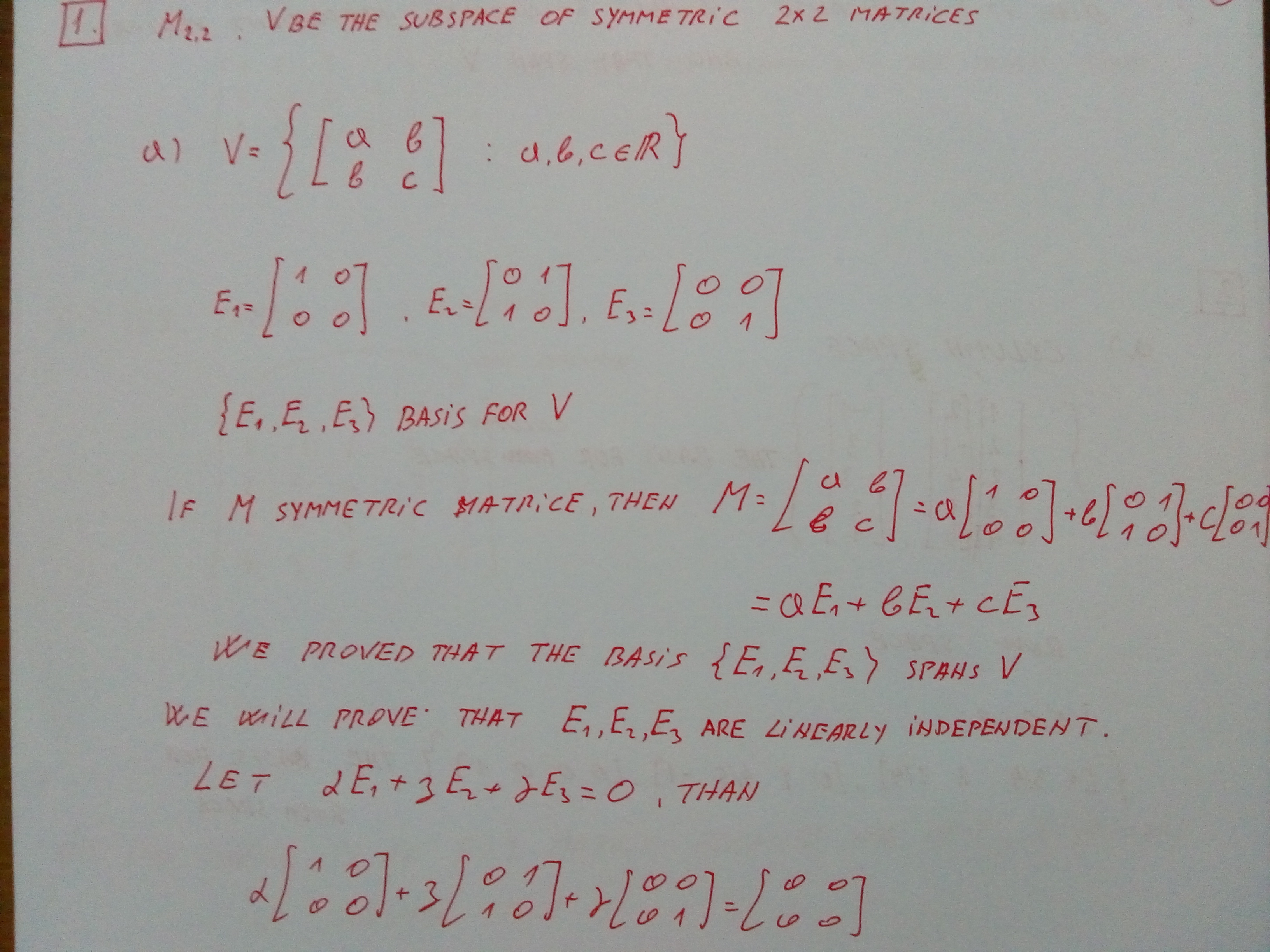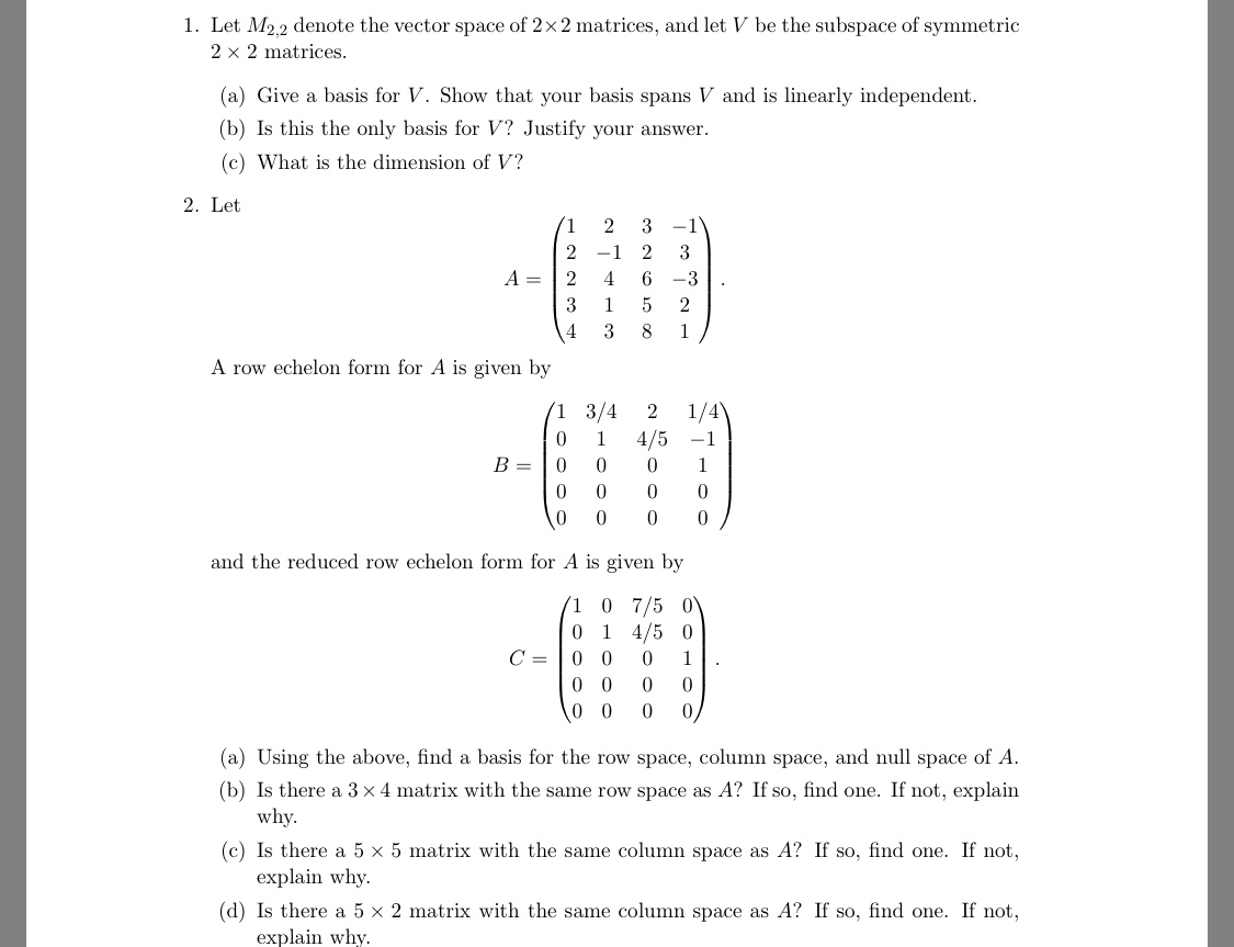 1. Let M2,2 denote the vector space of 2x2 matrices, and let V be t...