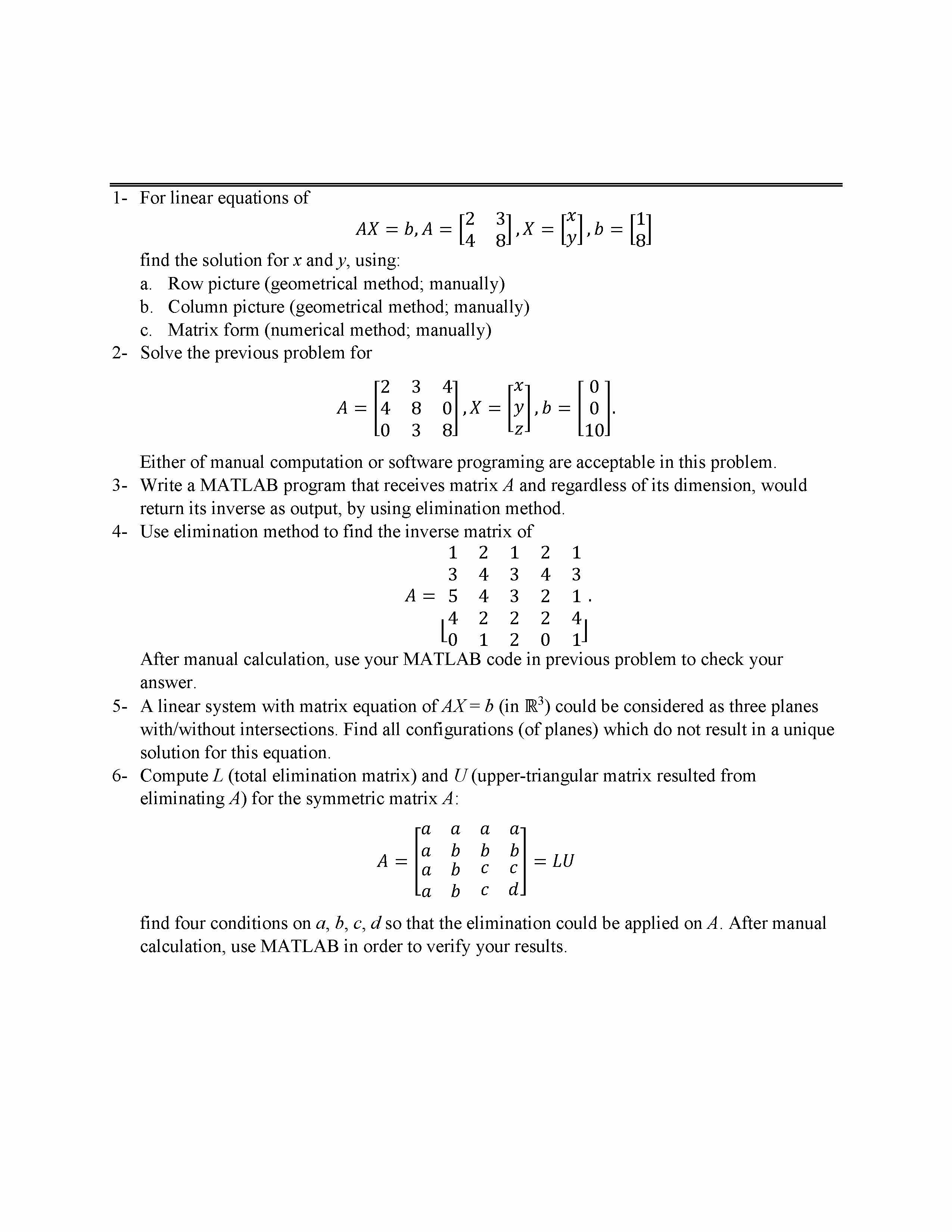 1- - For linear equations of find the solution for x and y, using:...