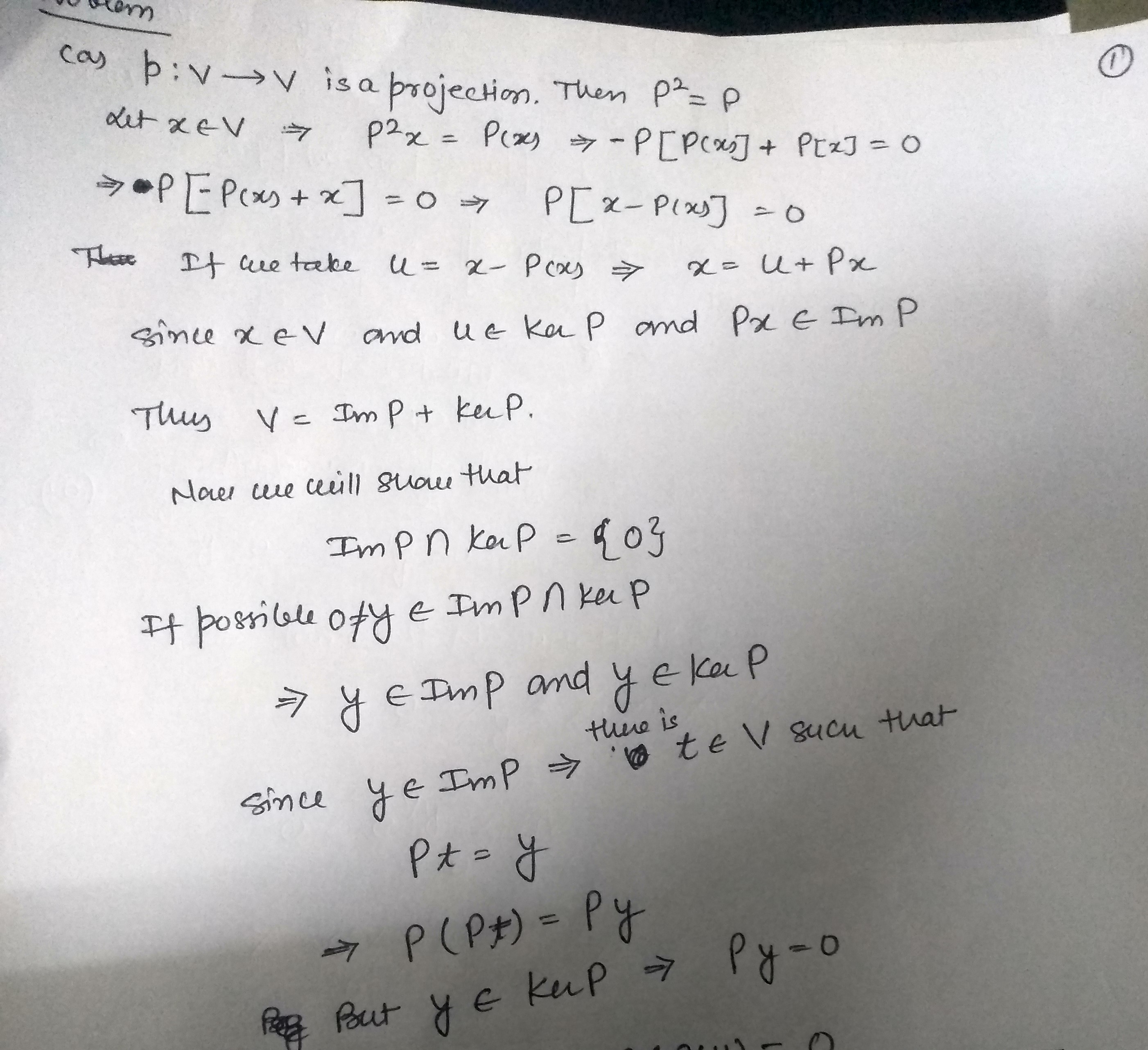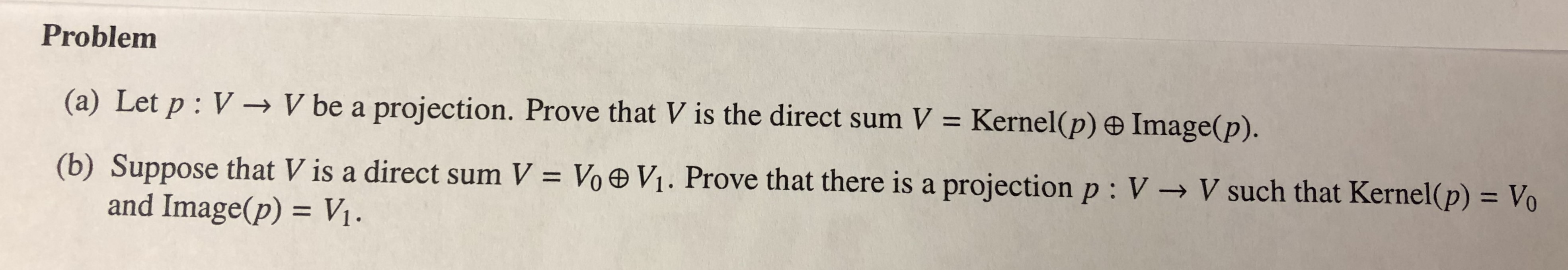 Problem (a) Let p : V V be a projection. Prove that V is the dire...