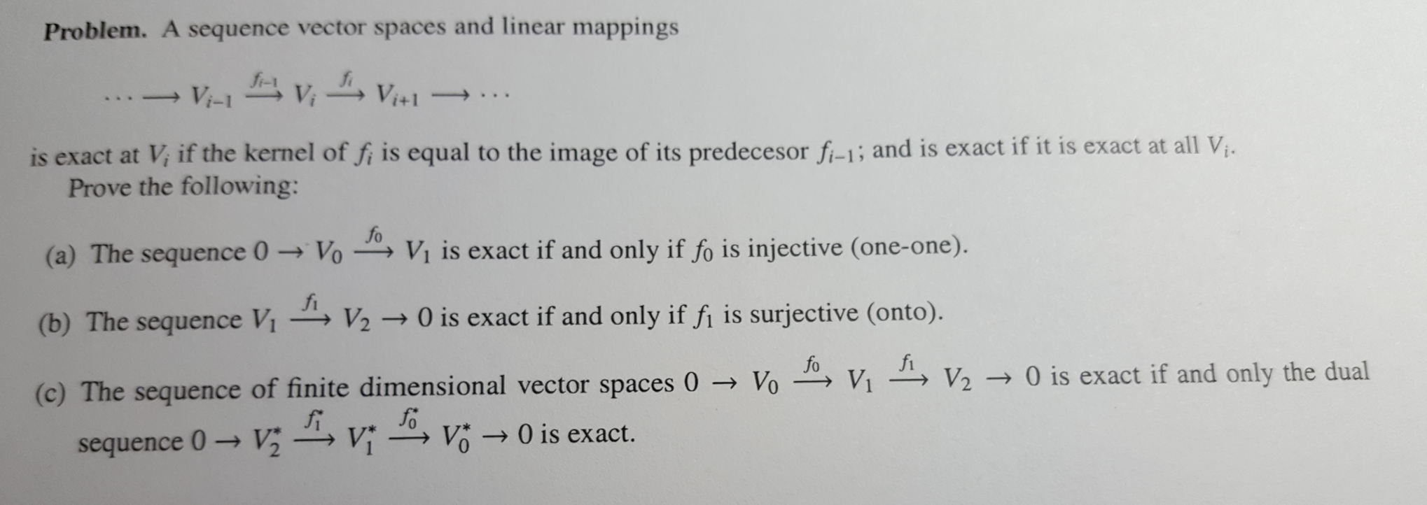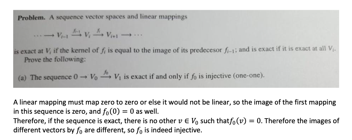 Problem. A sequence vector spaces and linear mappings fi-1 fi Vi...