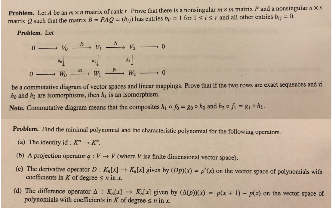 Problem. Let A be an m x n matrix of rank r. Prove that there is a ...