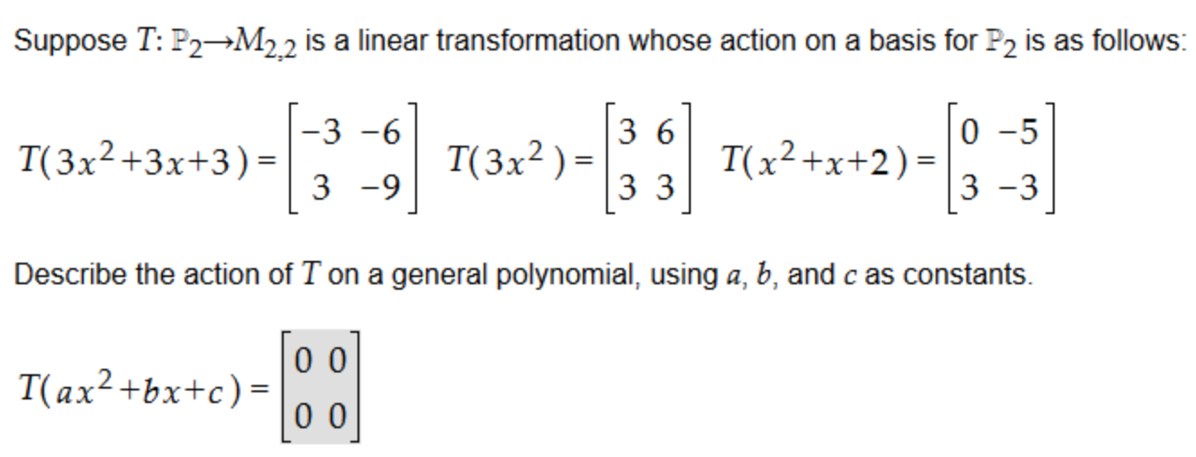 Suppose T: P2-M2,2 is a linear transformation whose action on a bas...