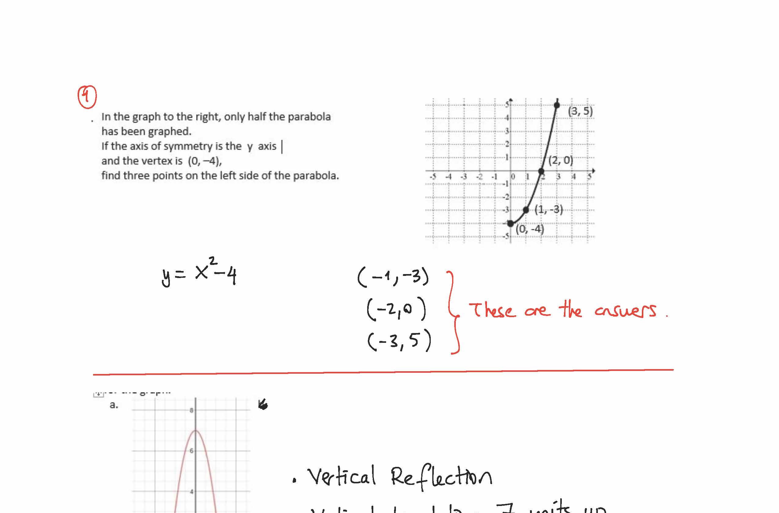 5. In the graph to the right, only half the parabola 4 (3, 5) h...
