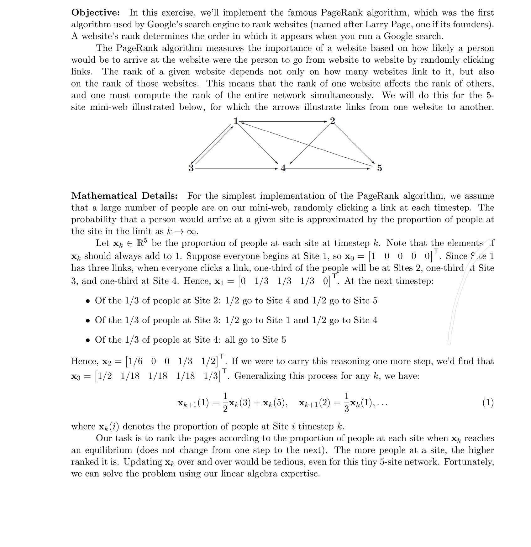 Objective: In this exercise, we'll implement the famous PageRank al...