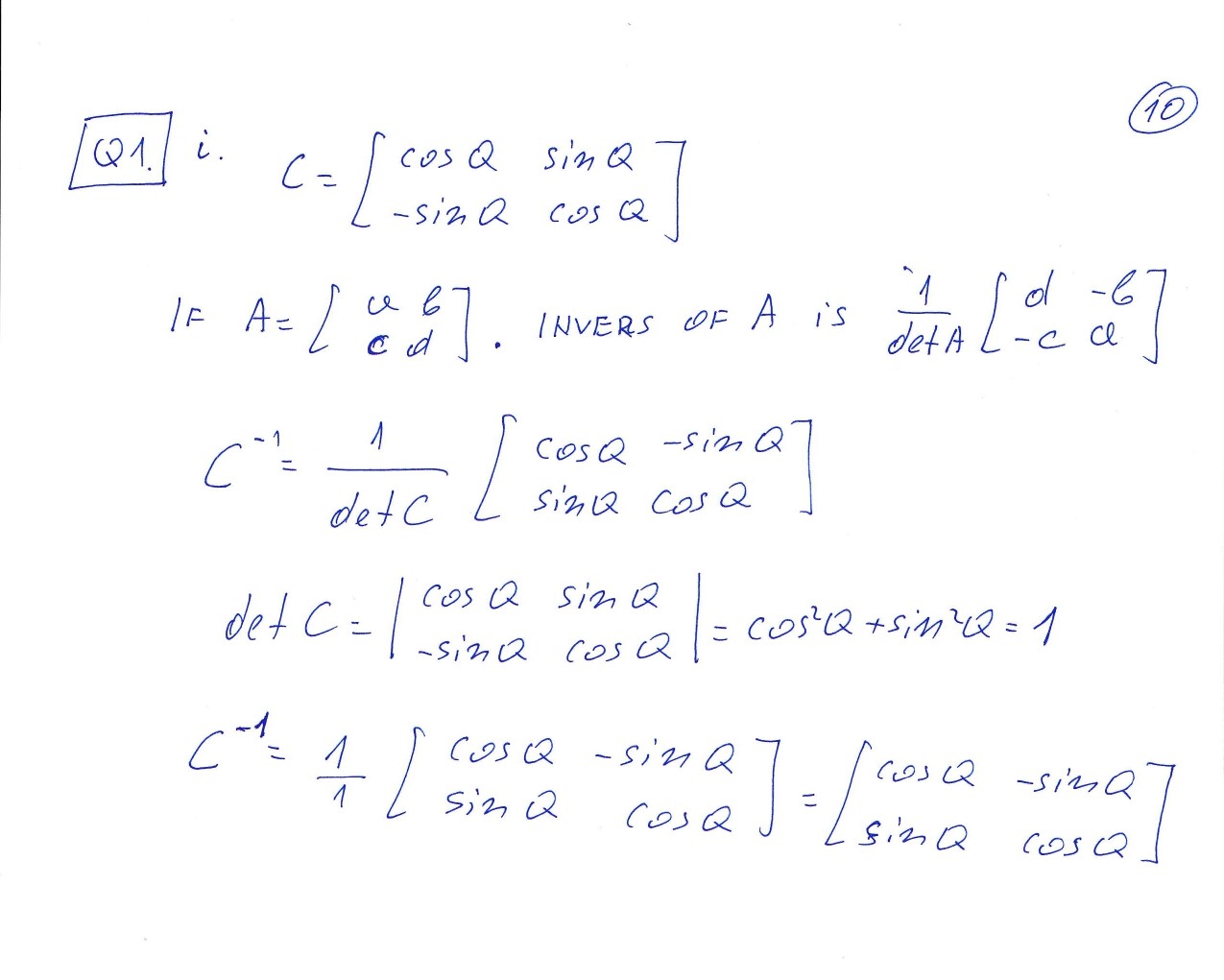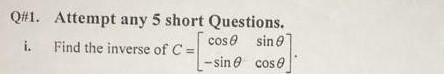Q#1. Attempt any 5 short Questions. i. Find the inverse of C = [...