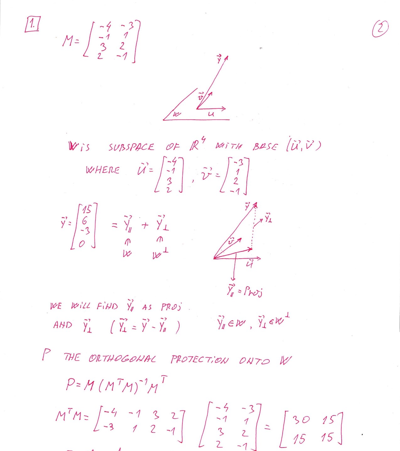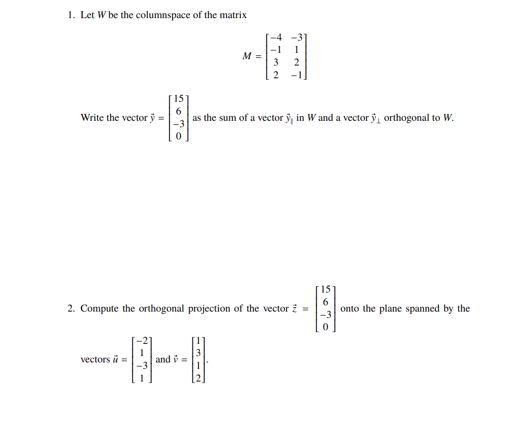 1. Let W be the columnspace of the matrix -4 -31 -1 M = 3 2 2...