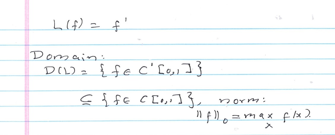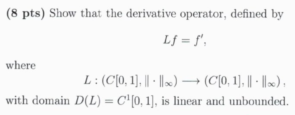 (8 pts) Show that the derivative operator, defined b Lf=f', where...