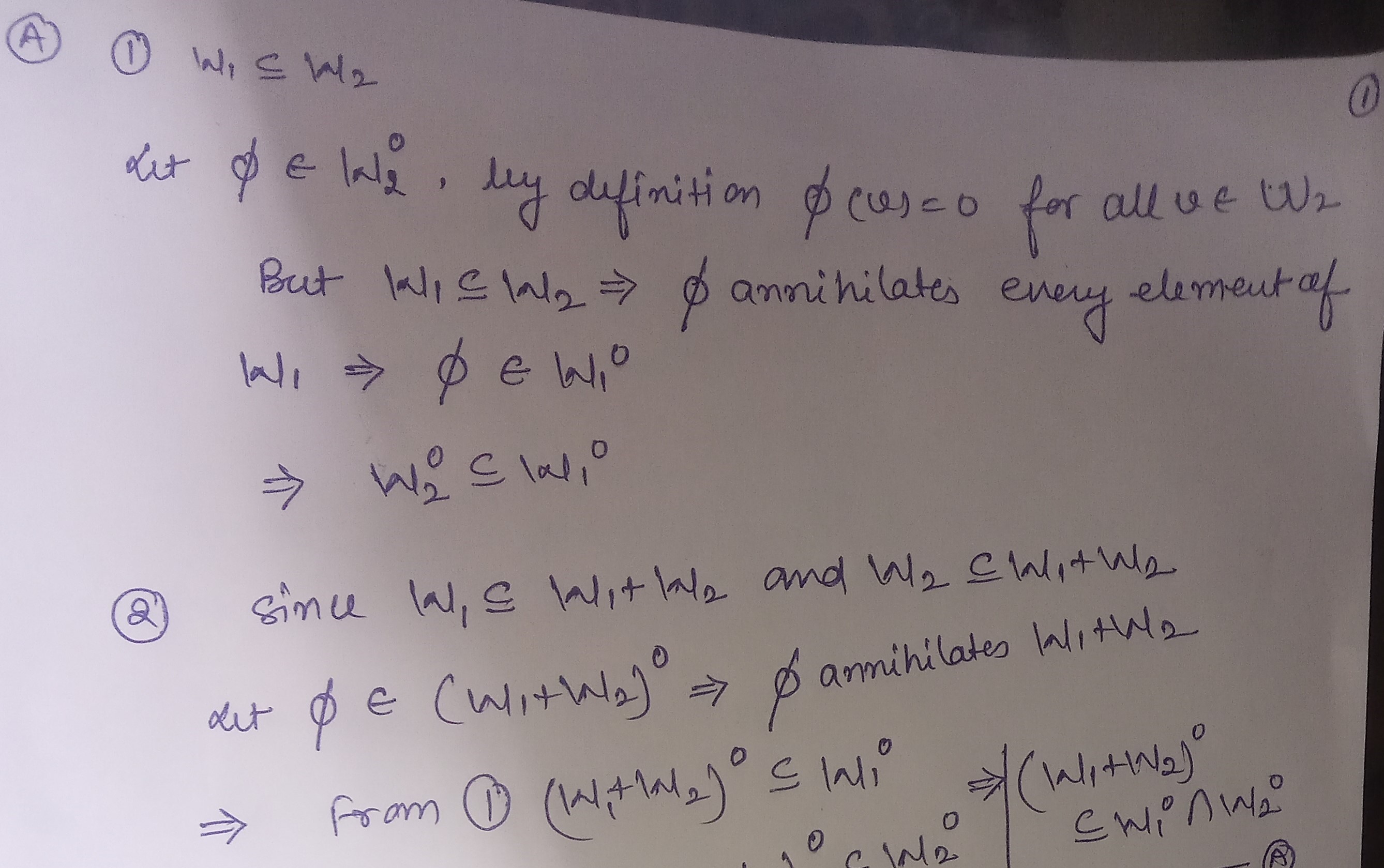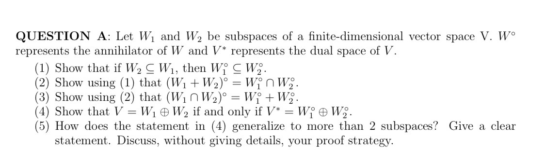 QUESTION A: Let W1 and W2 be subspaces of a finite-dimensional vect...