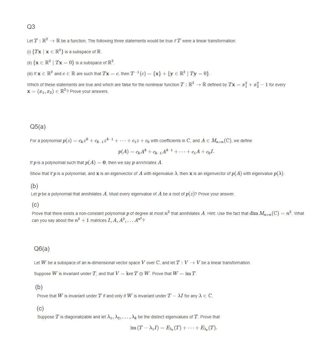 Q3 Let T : R 2 R R be a function. The following three statements w...