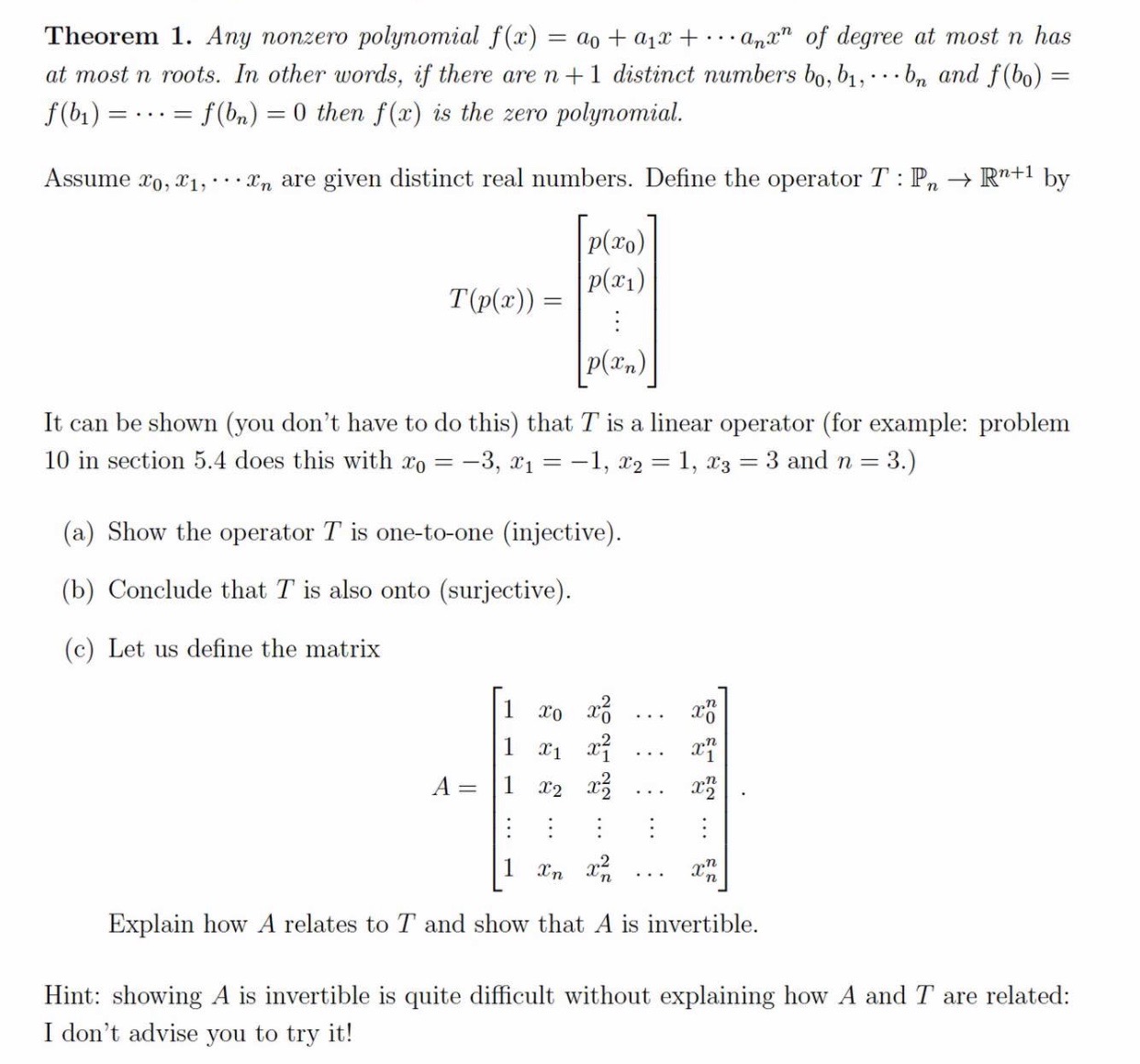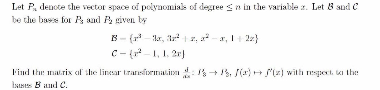 Let Pn denote the vector space of polynomials of degree < n in t...