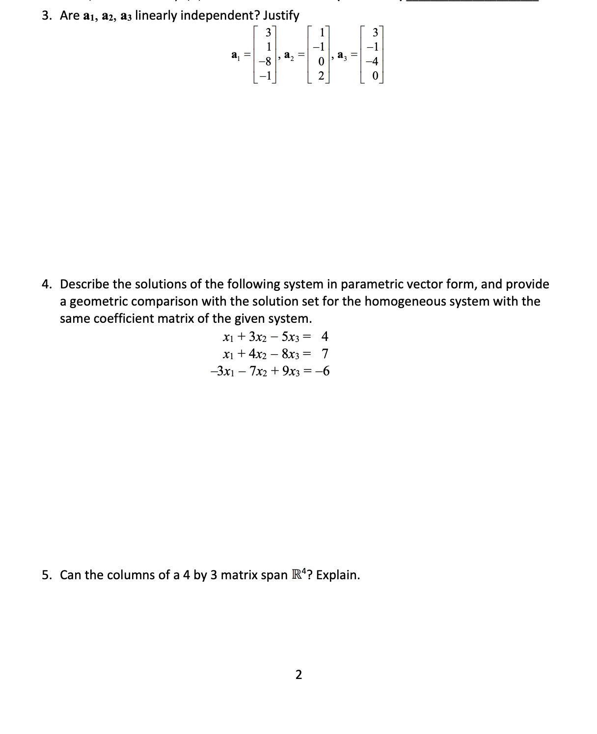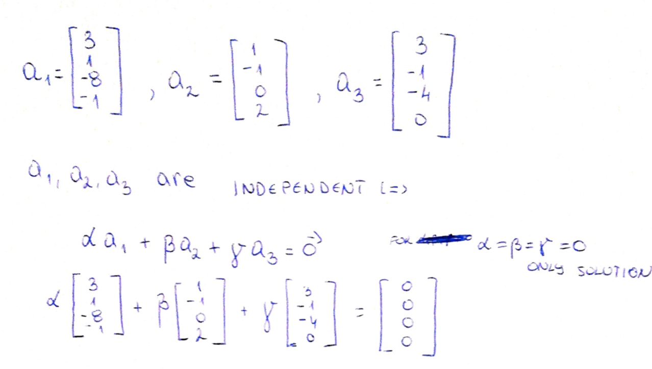 3. Are a1, a2, a3 linearly independent? Justify 3 1 3 - 1 = ...