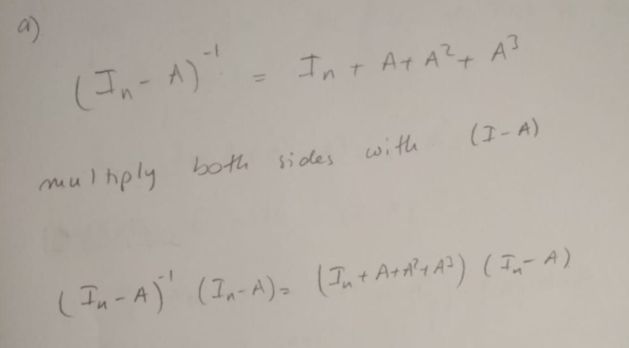3. Let Ae Mn(R). (a) Show that - = In+A+A2+ A³ if A4 = 0 (b) Use...