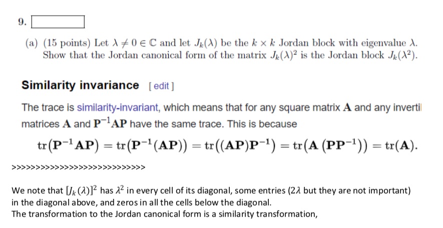 9. (a) (15 points) Let λ 6 ≠0 ∈ C and let Jk(λ) b...