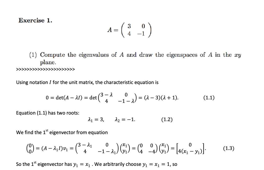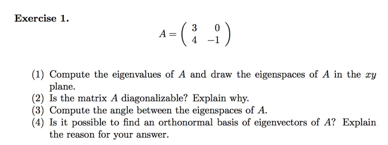Exercise 1. ( 3 A = 4 - 1 ) (1) Compute the eigenvalues of A...