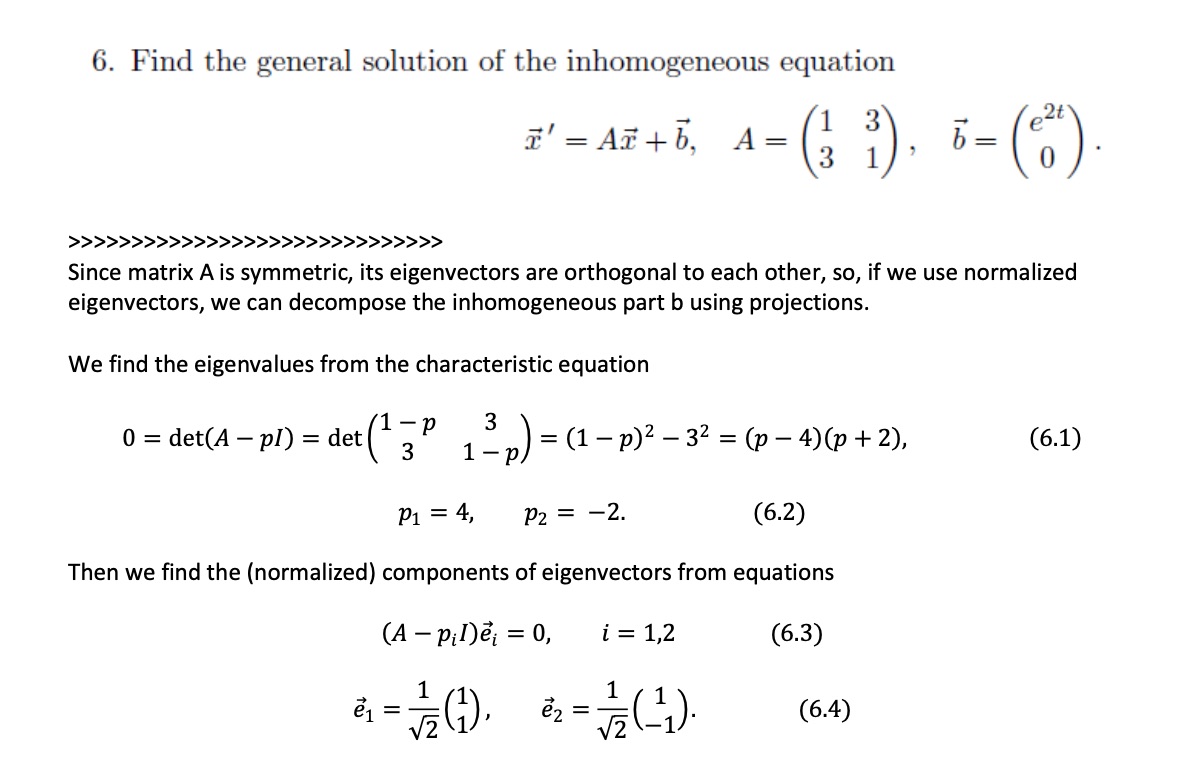 6. Find the general solution of the in homogeneous equation 's' Az...