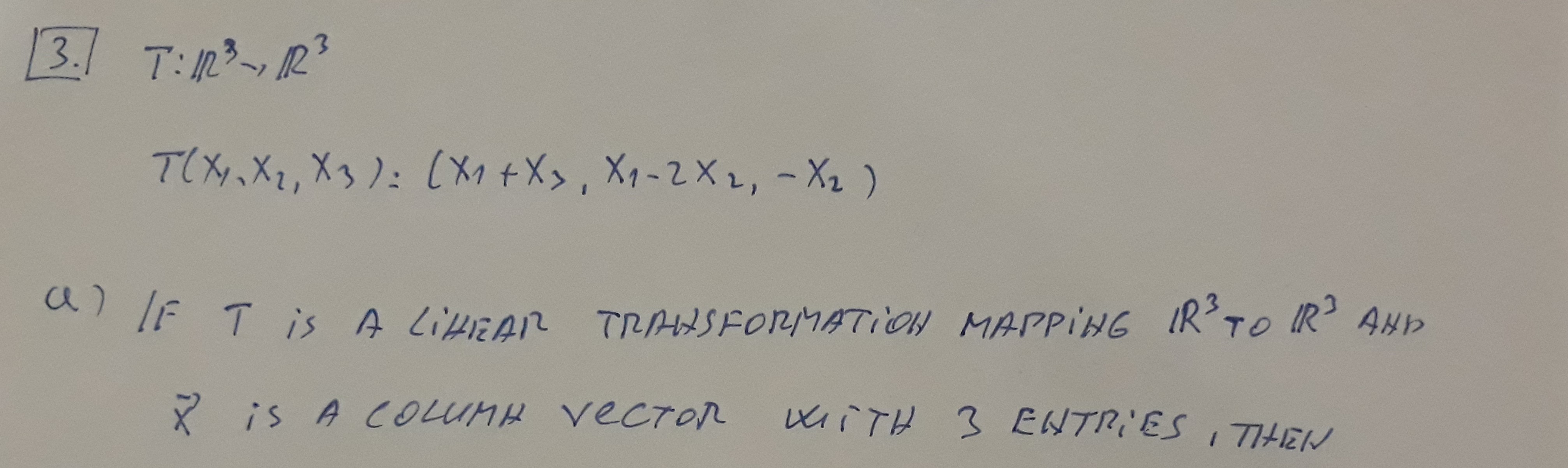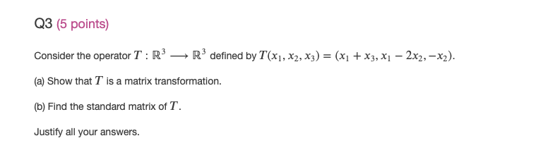 Q3 (5 points) Consider the operator T : R3 - > R3 defined by T(...