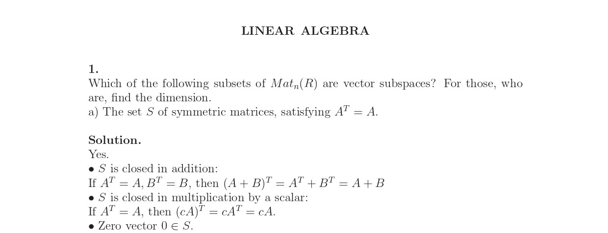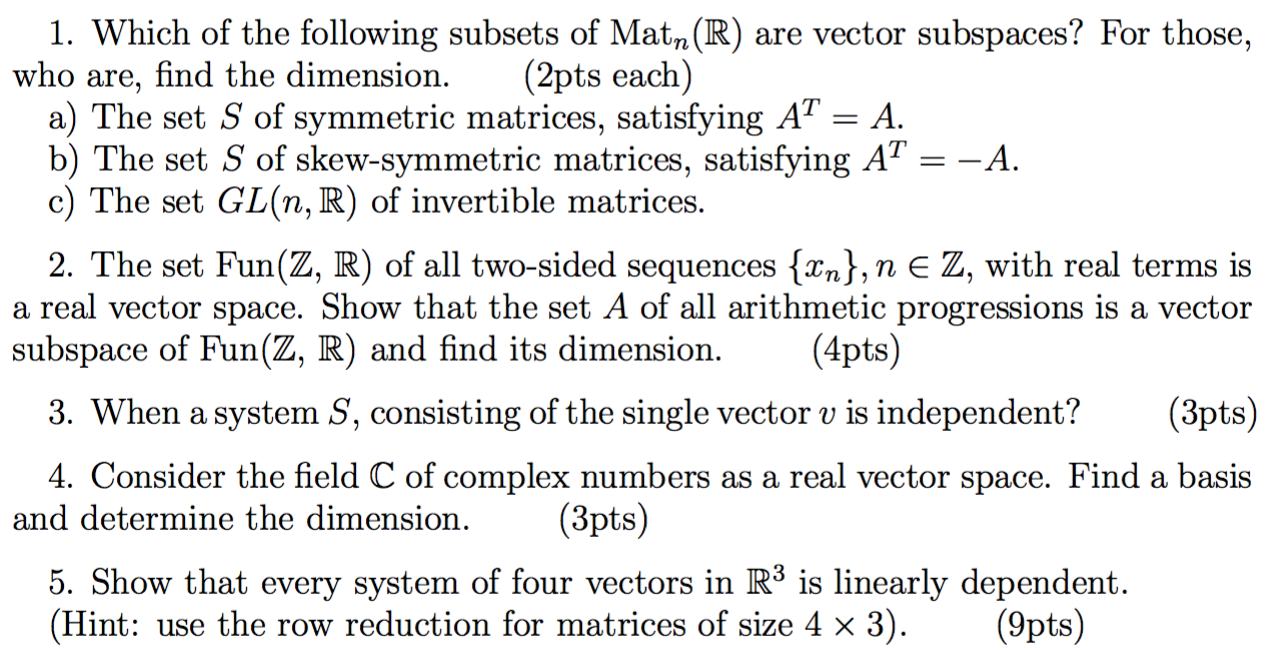 1. Which of the following subsets of Matn (R) are vector subspaces?...