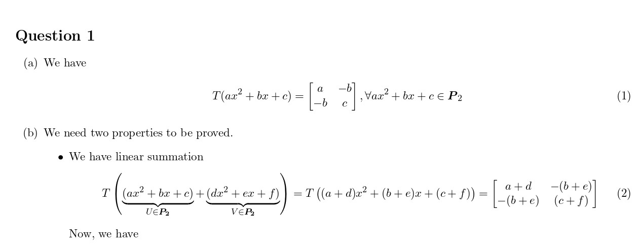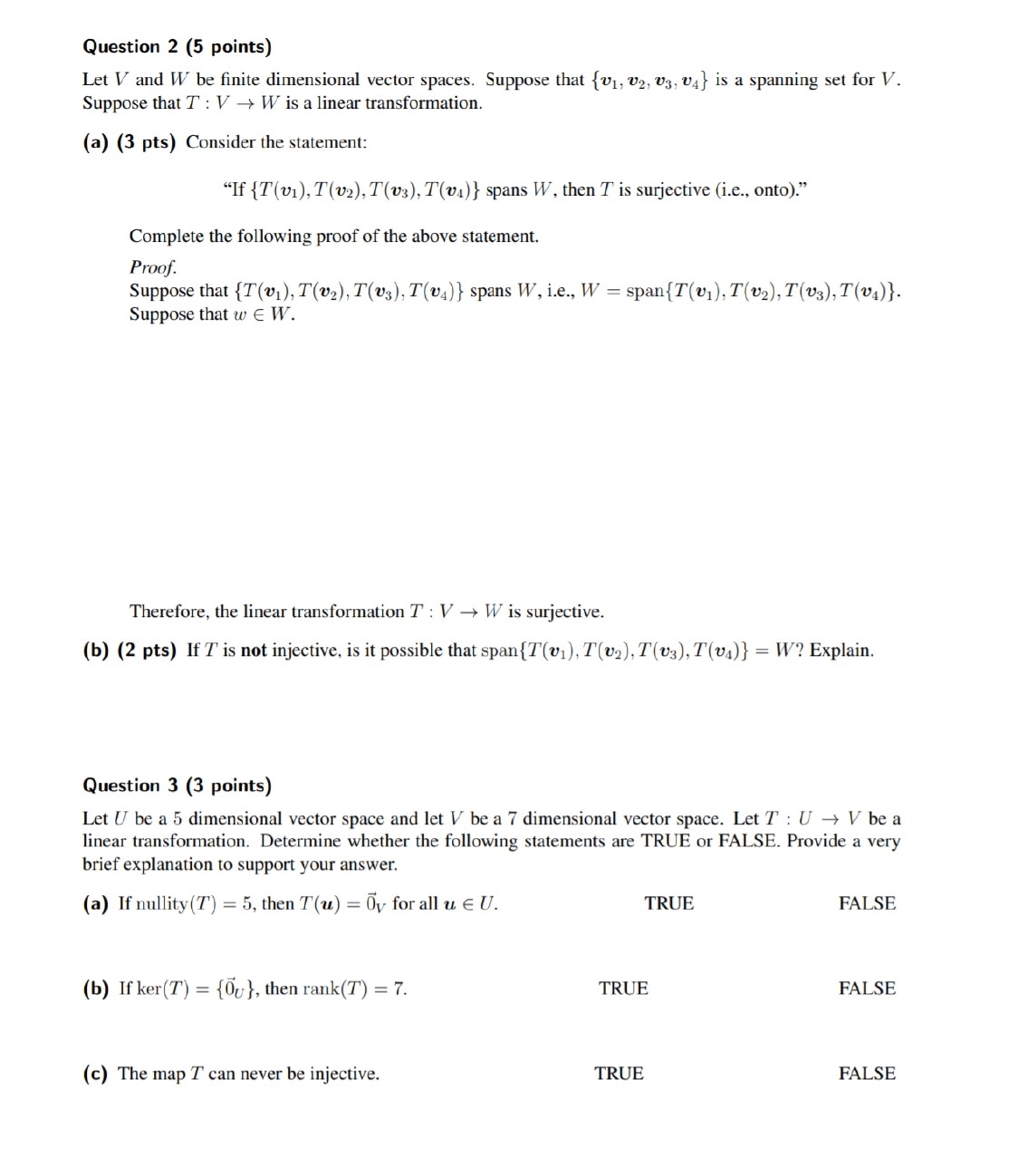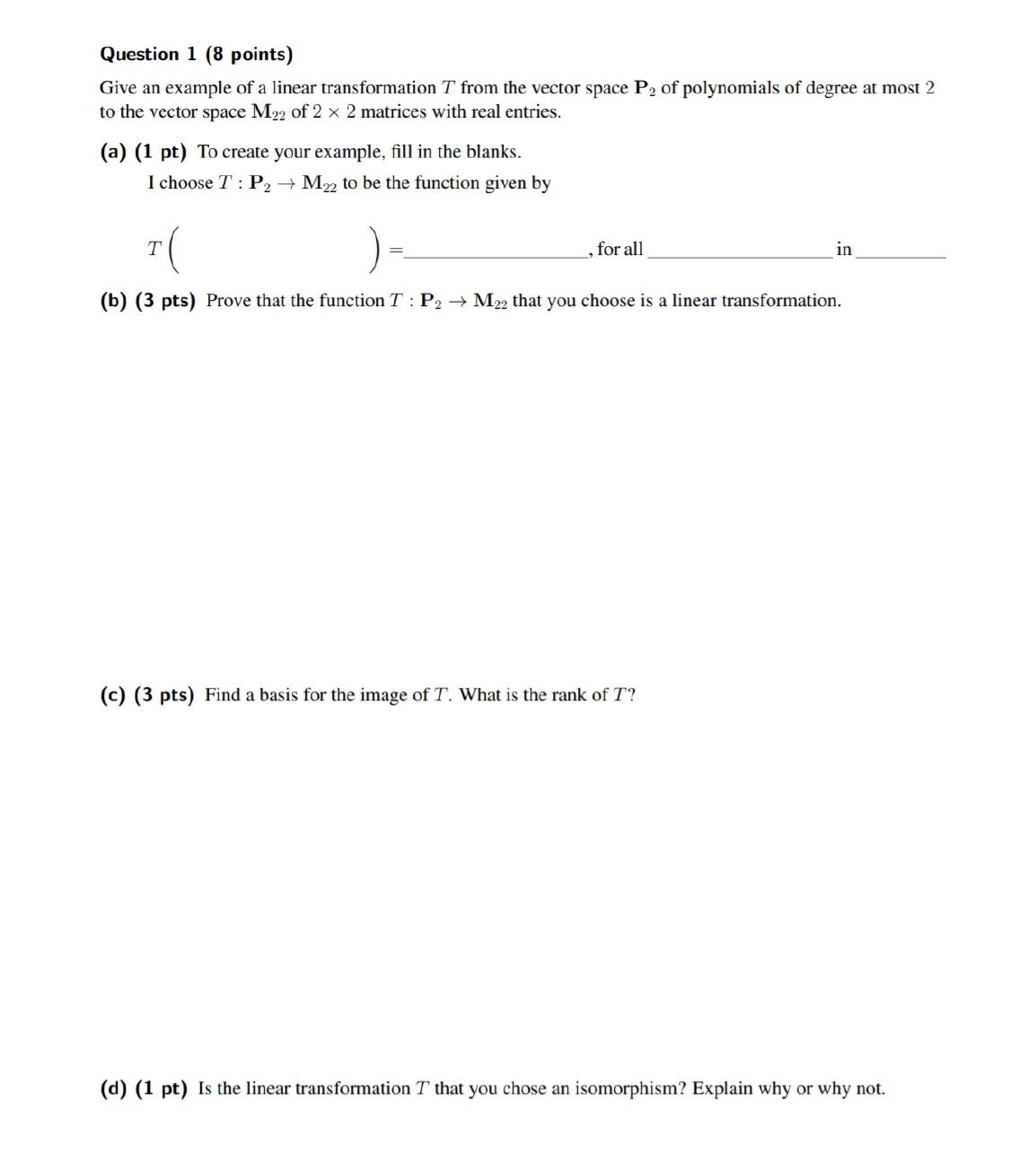 Question 1 (8 points) Give an example of a linear transformation T...