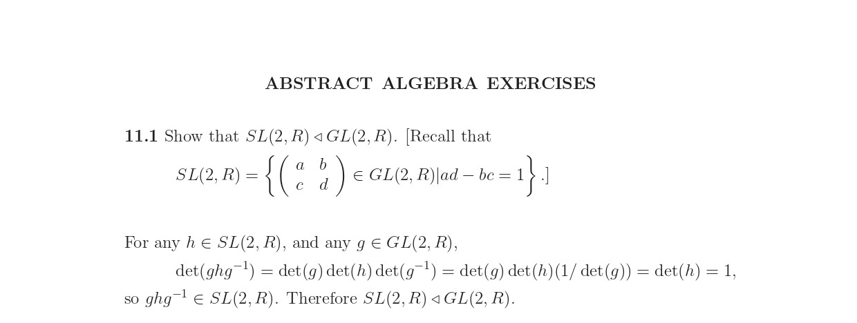 EXERCISES 11.1 Show that SL(2,R) A GL(2,R). [Recall that SL(2,R) ...