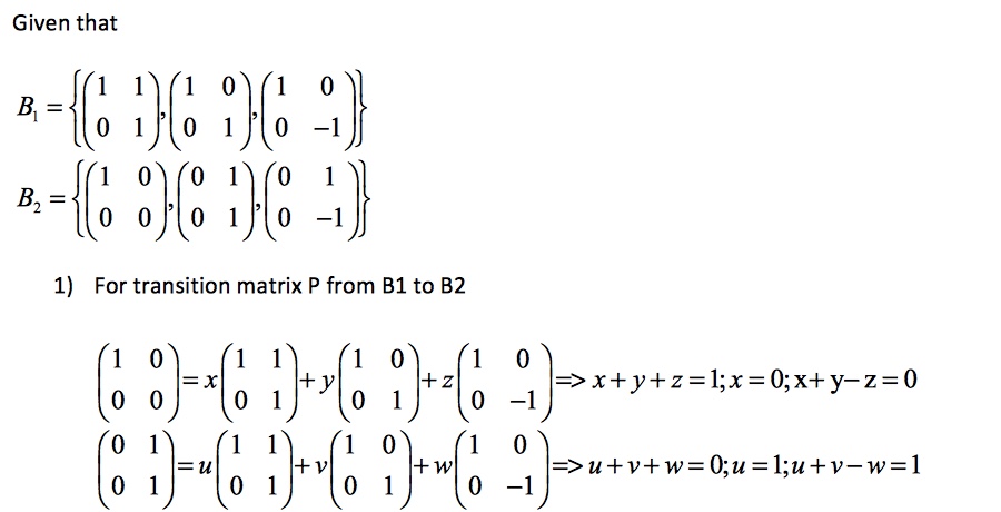 Question. B1 = {( 1101),(1001),(100-1)} B2 = {(1000),(0101),(...