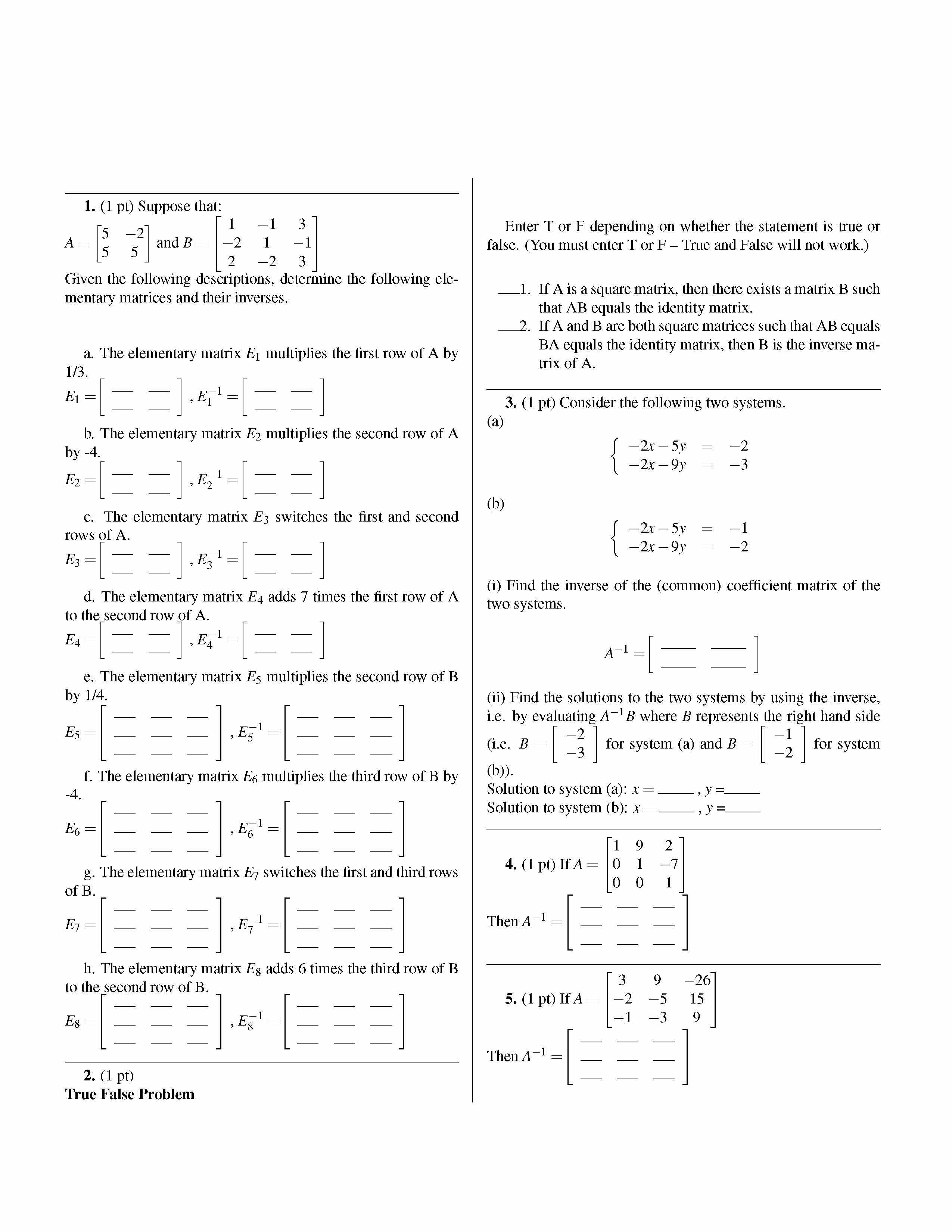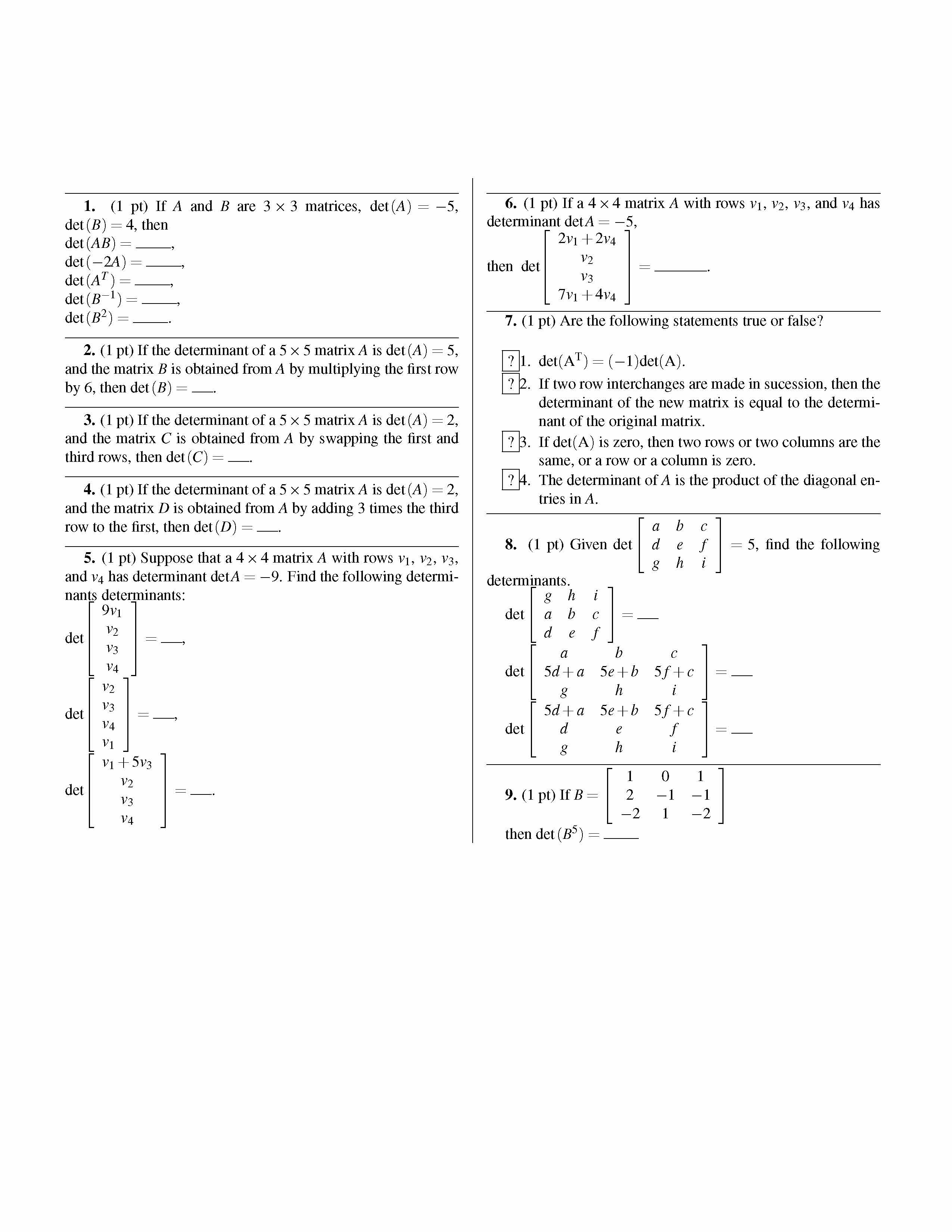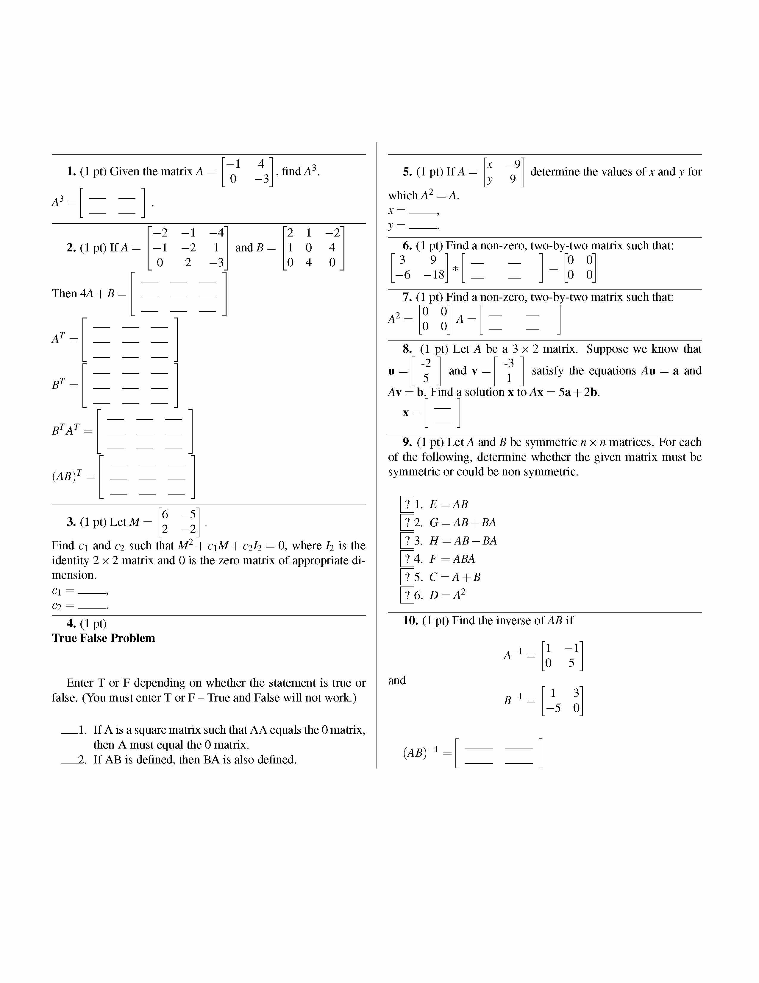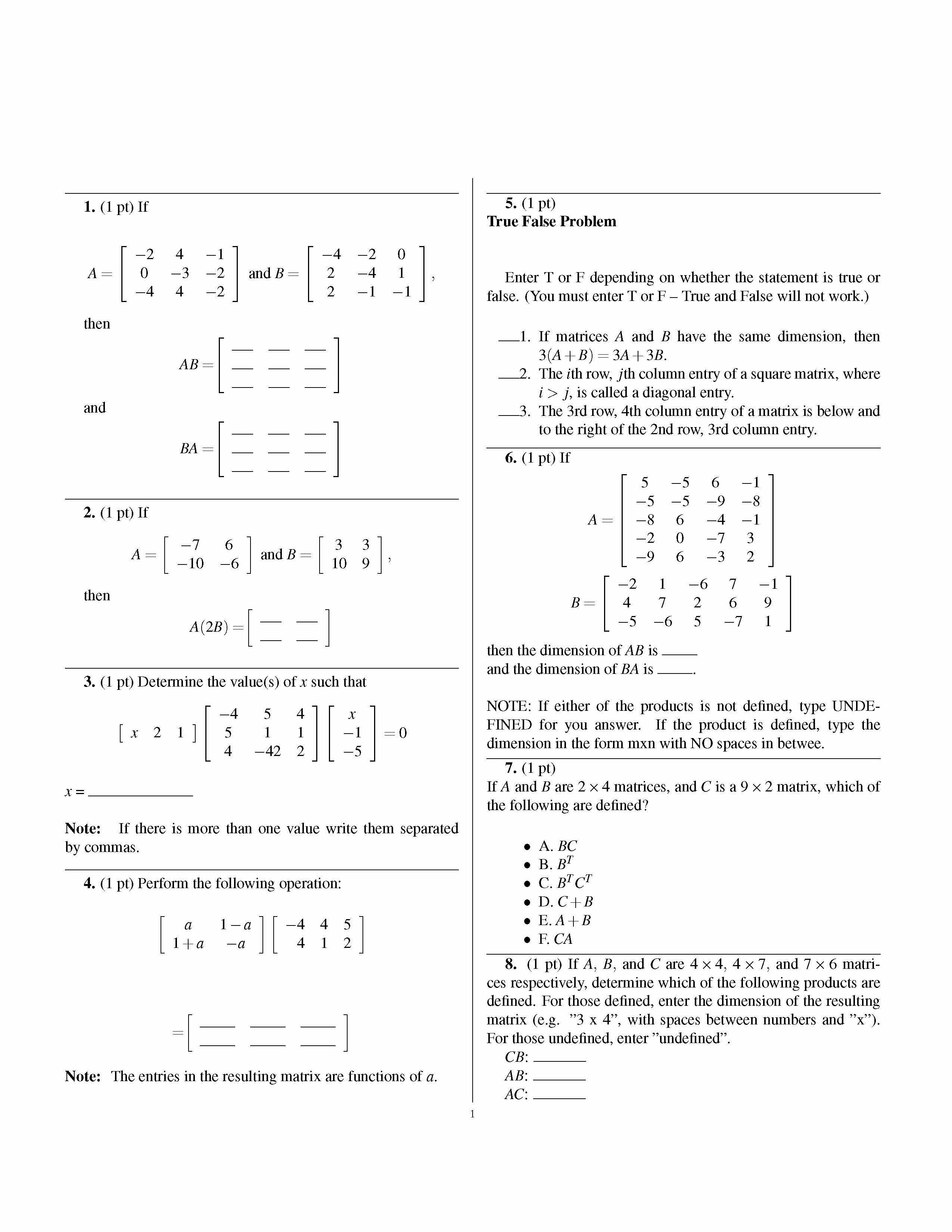 1. (1pt) If 5.(1 pt) True False Problem 4 -4 -2 0 A -3 and ...