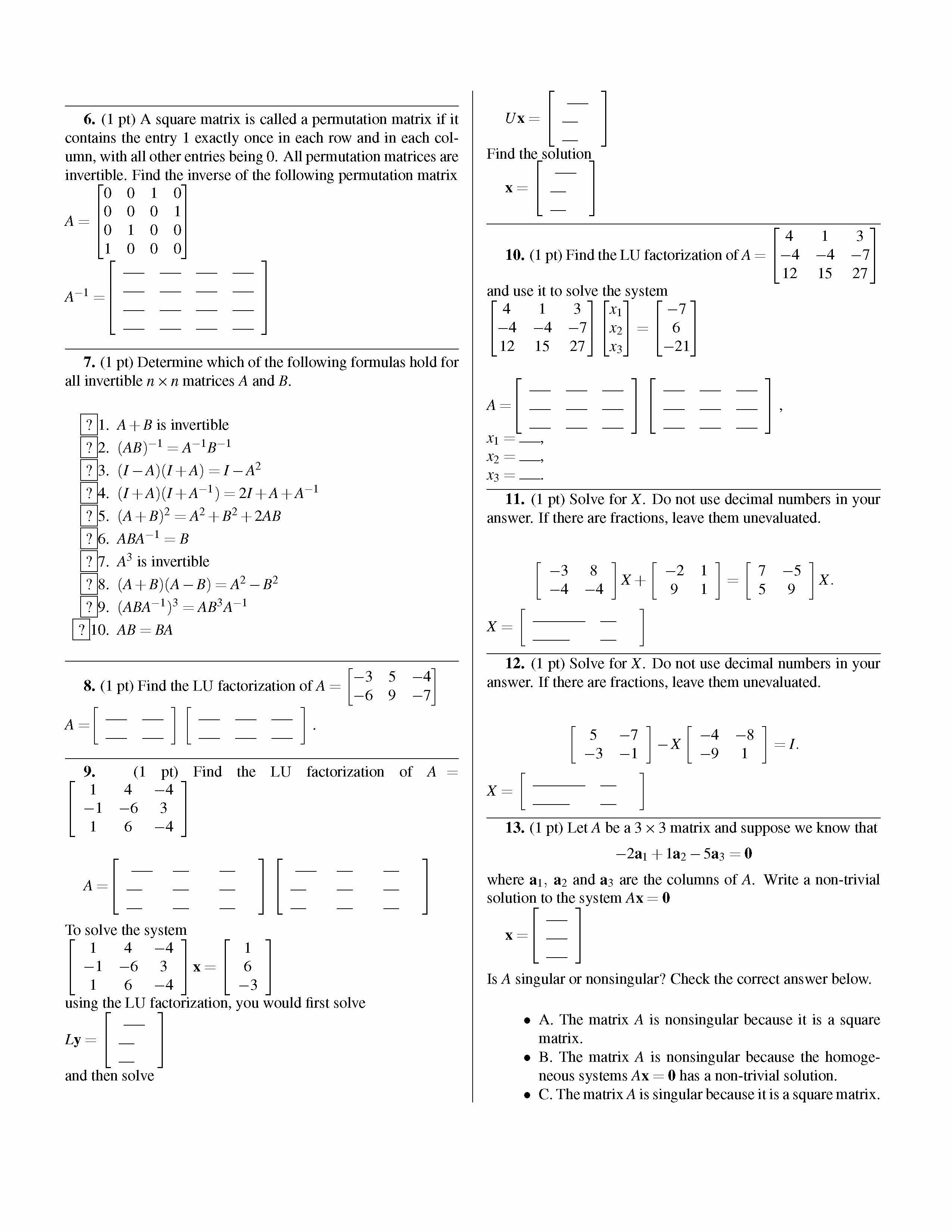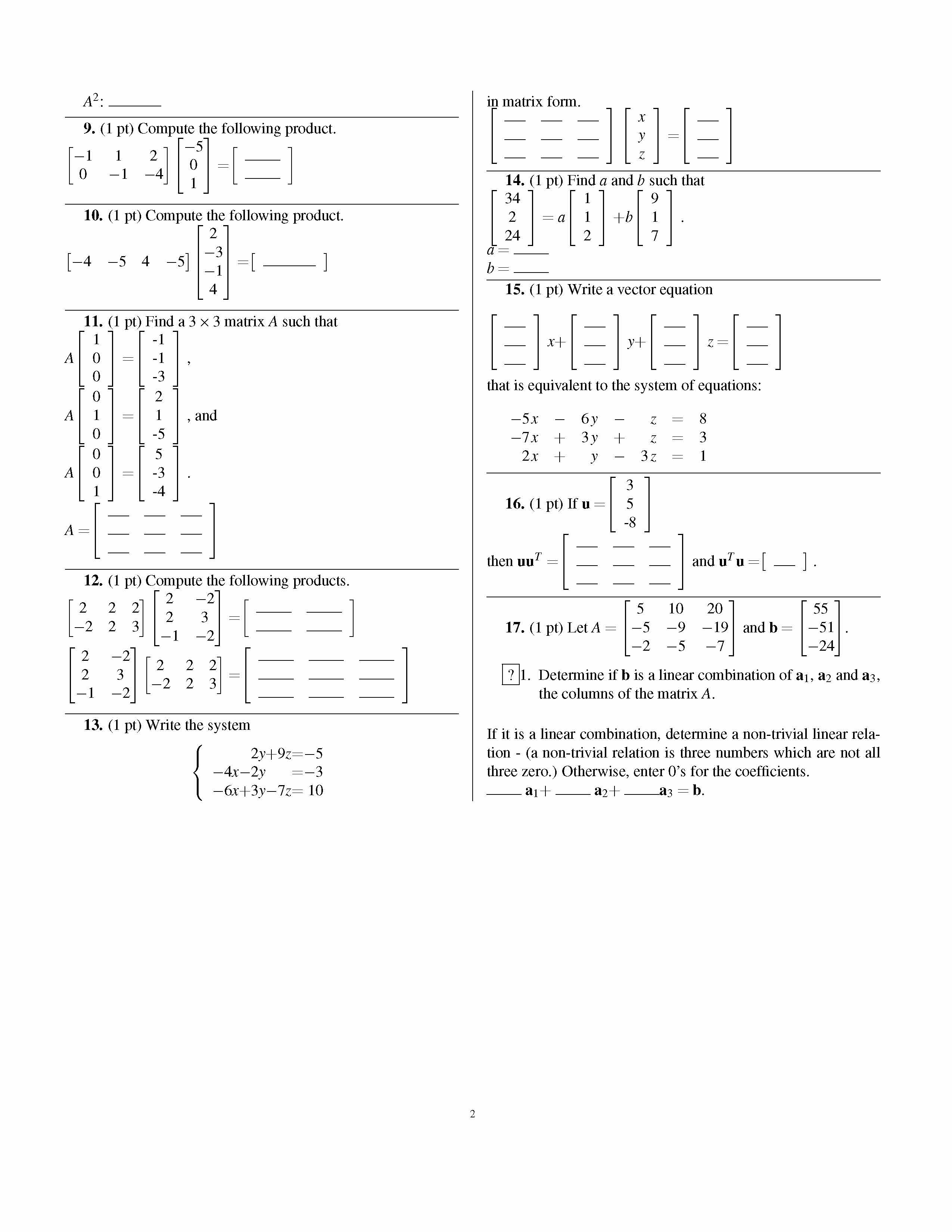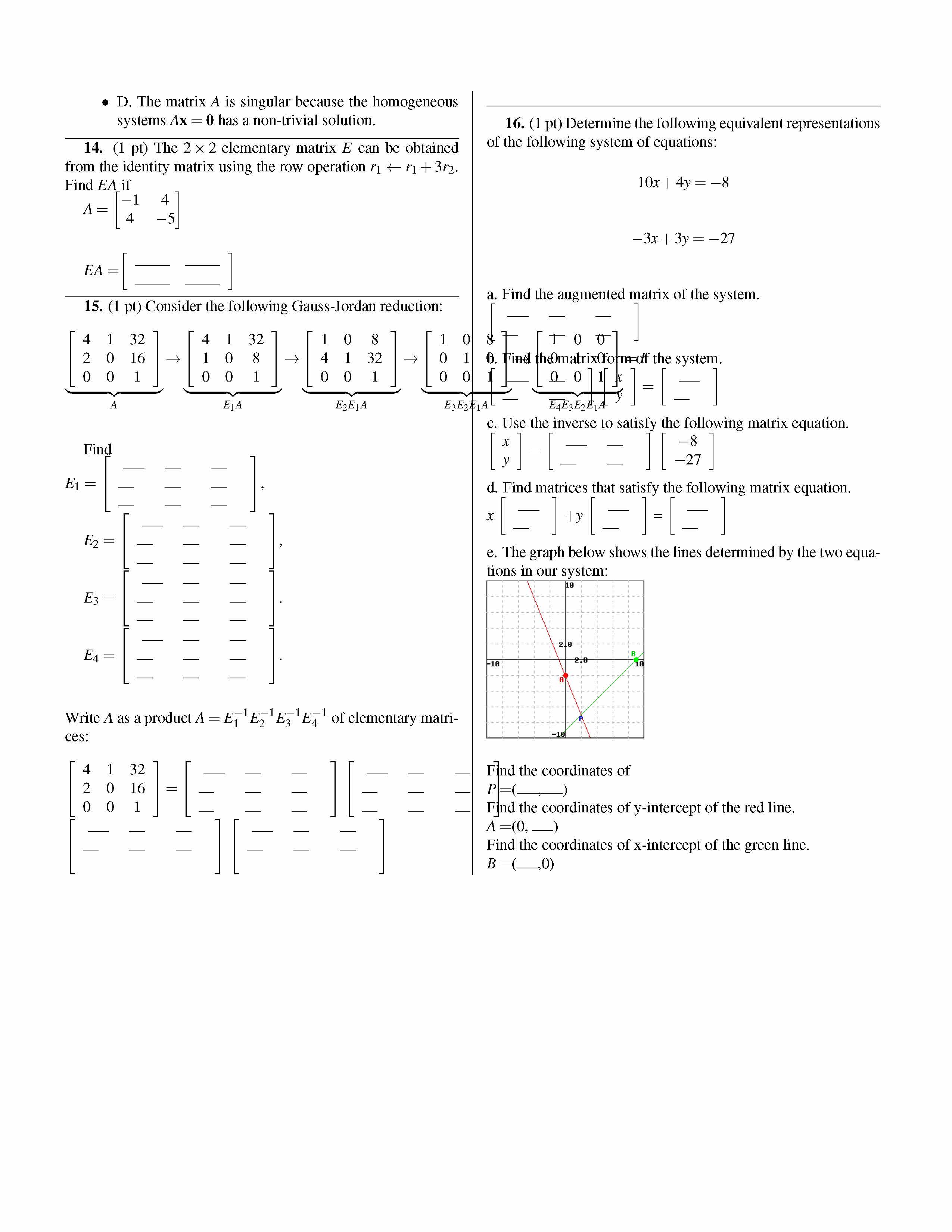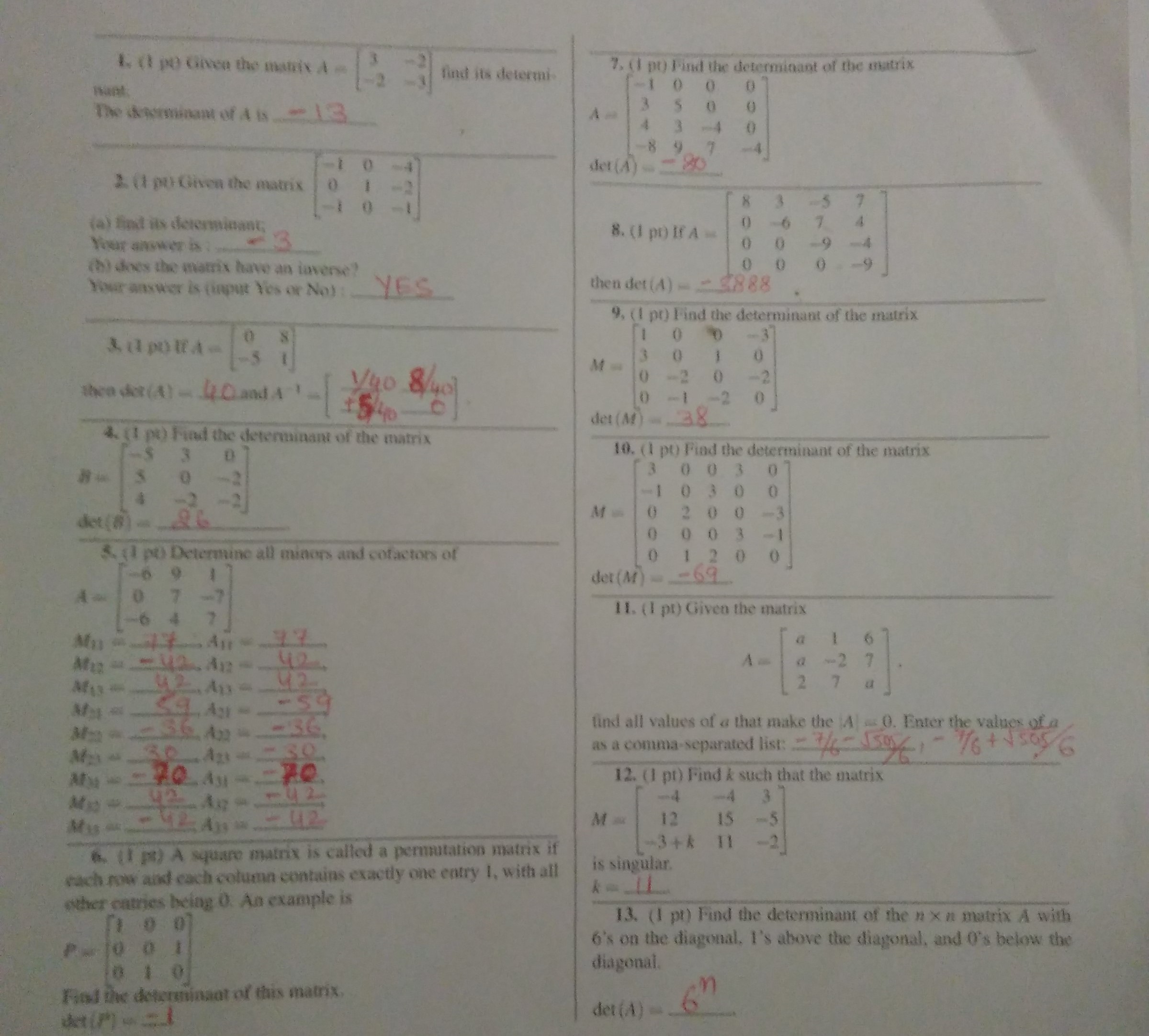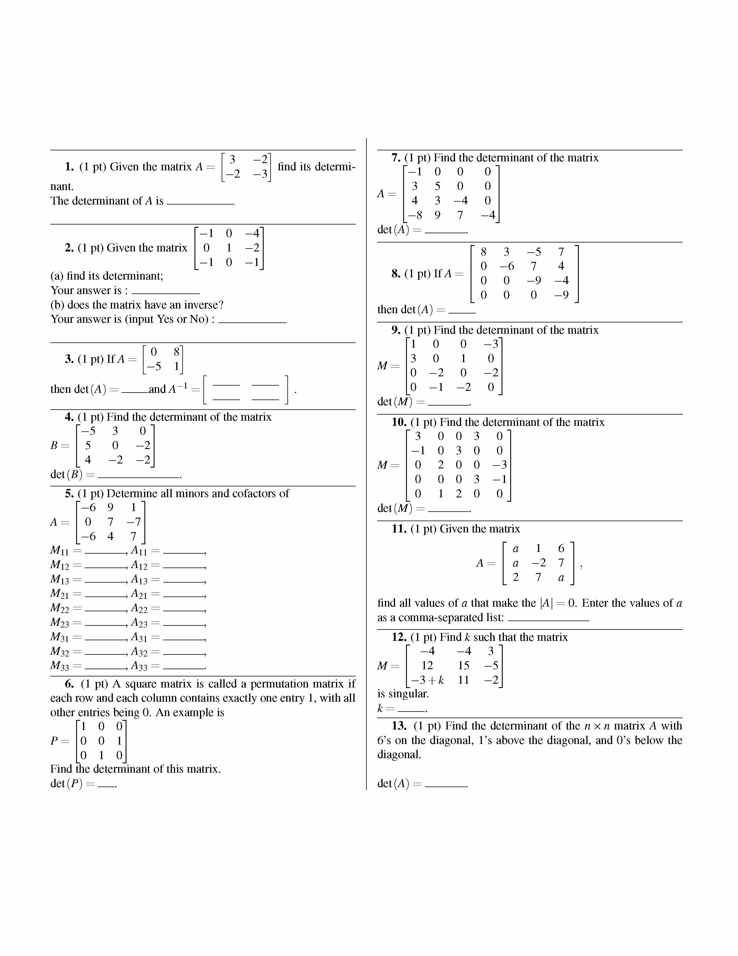 1. (1pt) If 5.(1 pt) True False Problem 4 -4 -2 0 A -3 and ...
