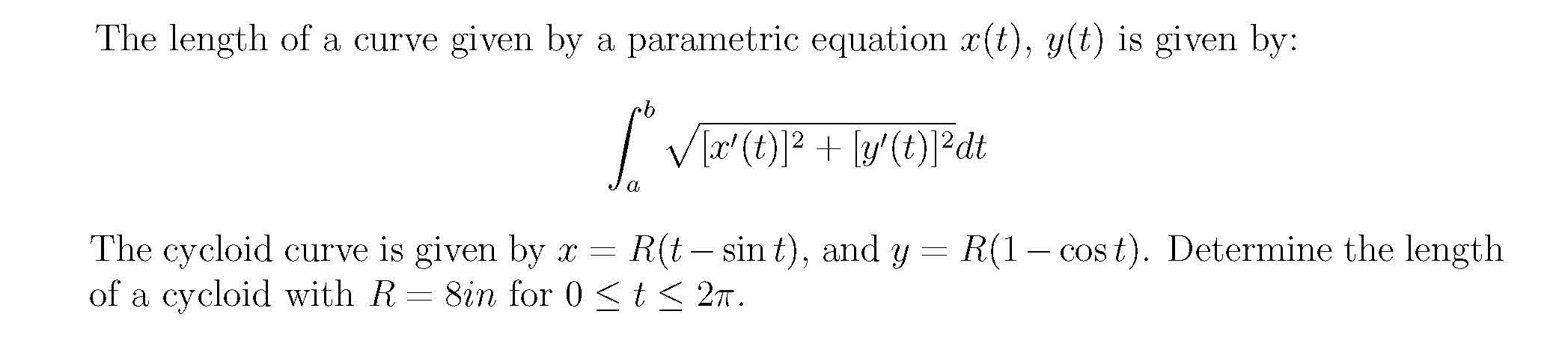 The length of a curve given by a parametric equation x(t), y(t) is ...