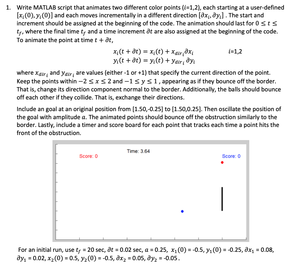 1. Write MATLAB script that animates two different color points (i=...