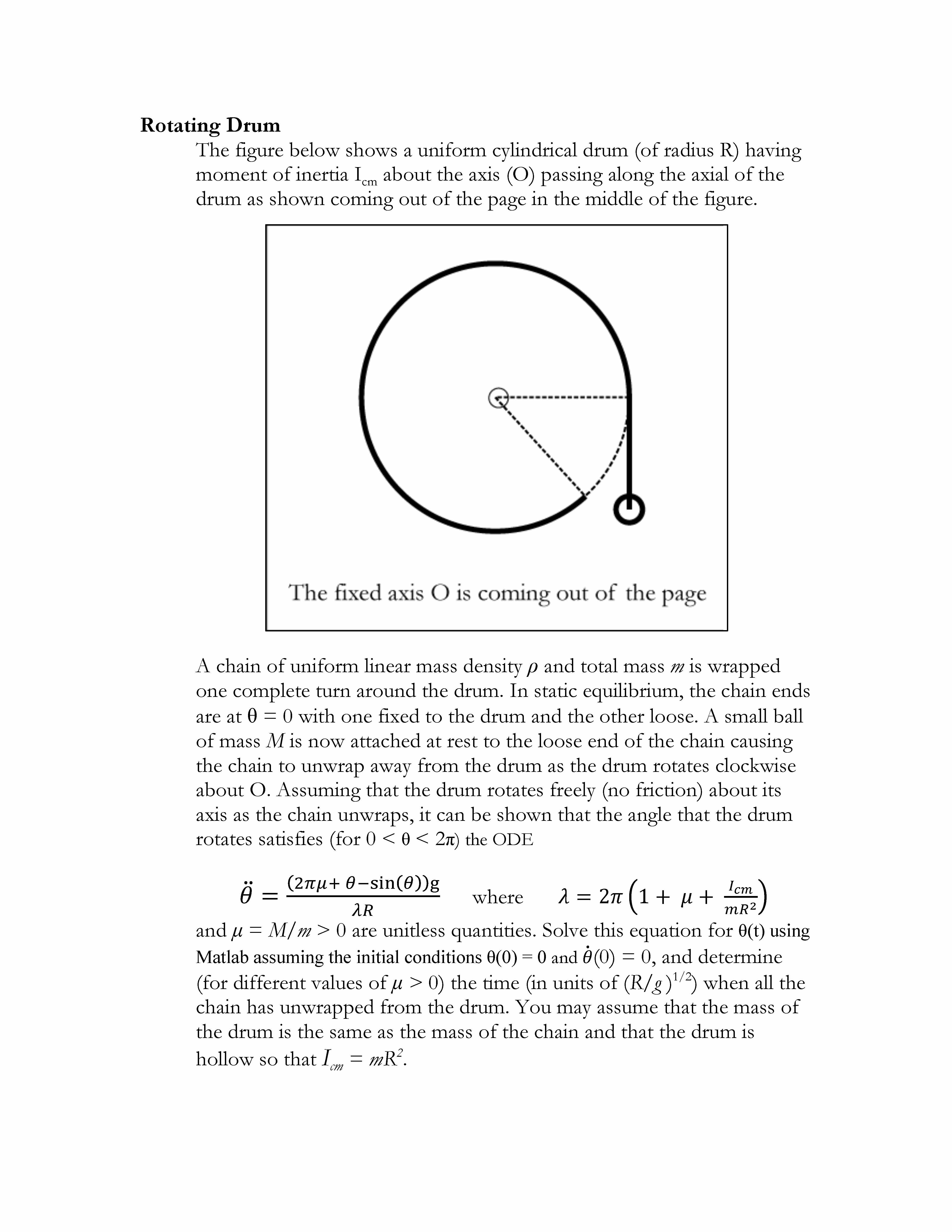 Rotating Drum The figure below shows a uniform cylindrical drum (o...
