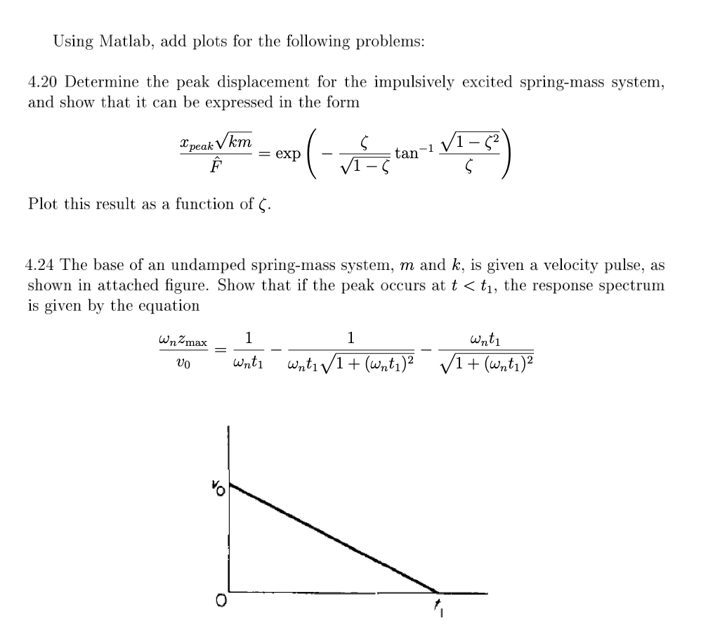 Using Matlab, add plots for the following problems: 4.20 Determine...