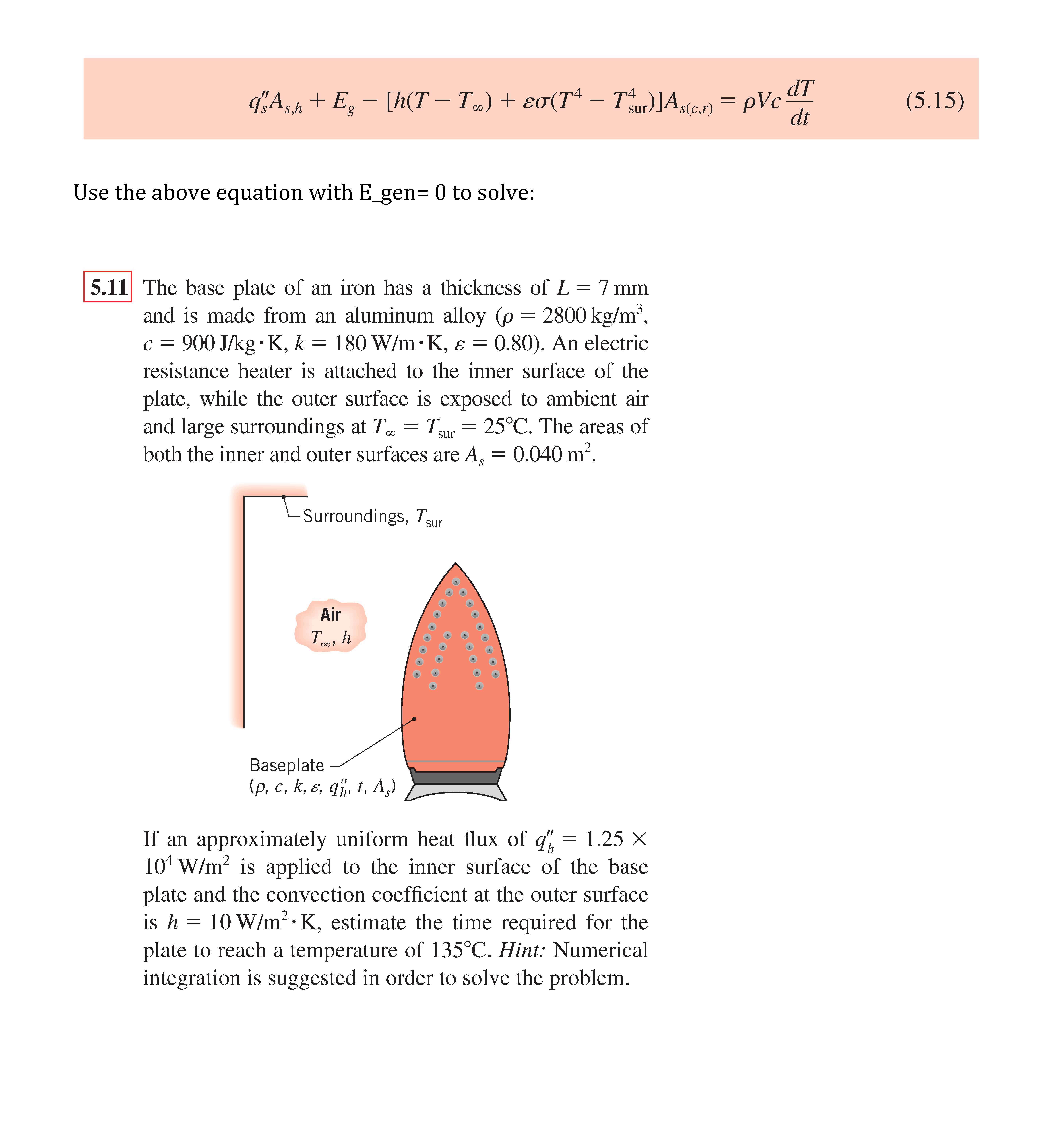 + Eg - [h(T - Too) + - = (5.15) Use the above equation with E_gen...