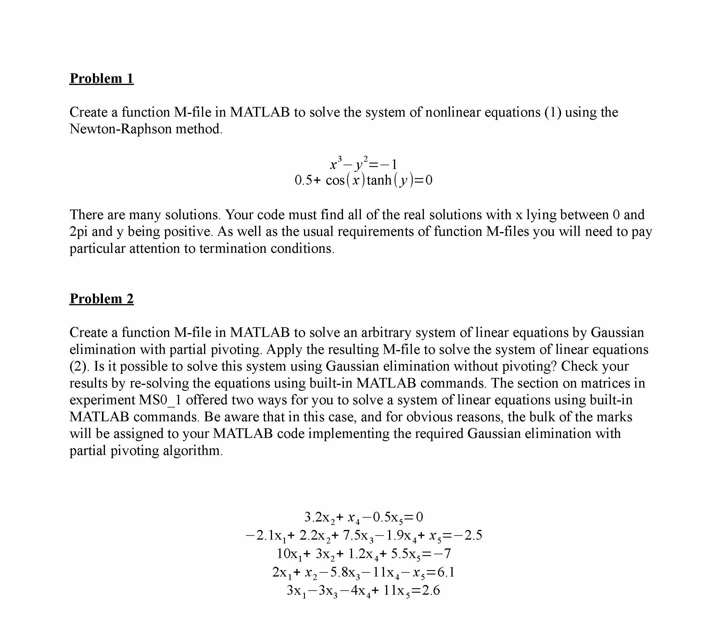 Problem 1 Create a function M-file in MATLAB to solve the system o...