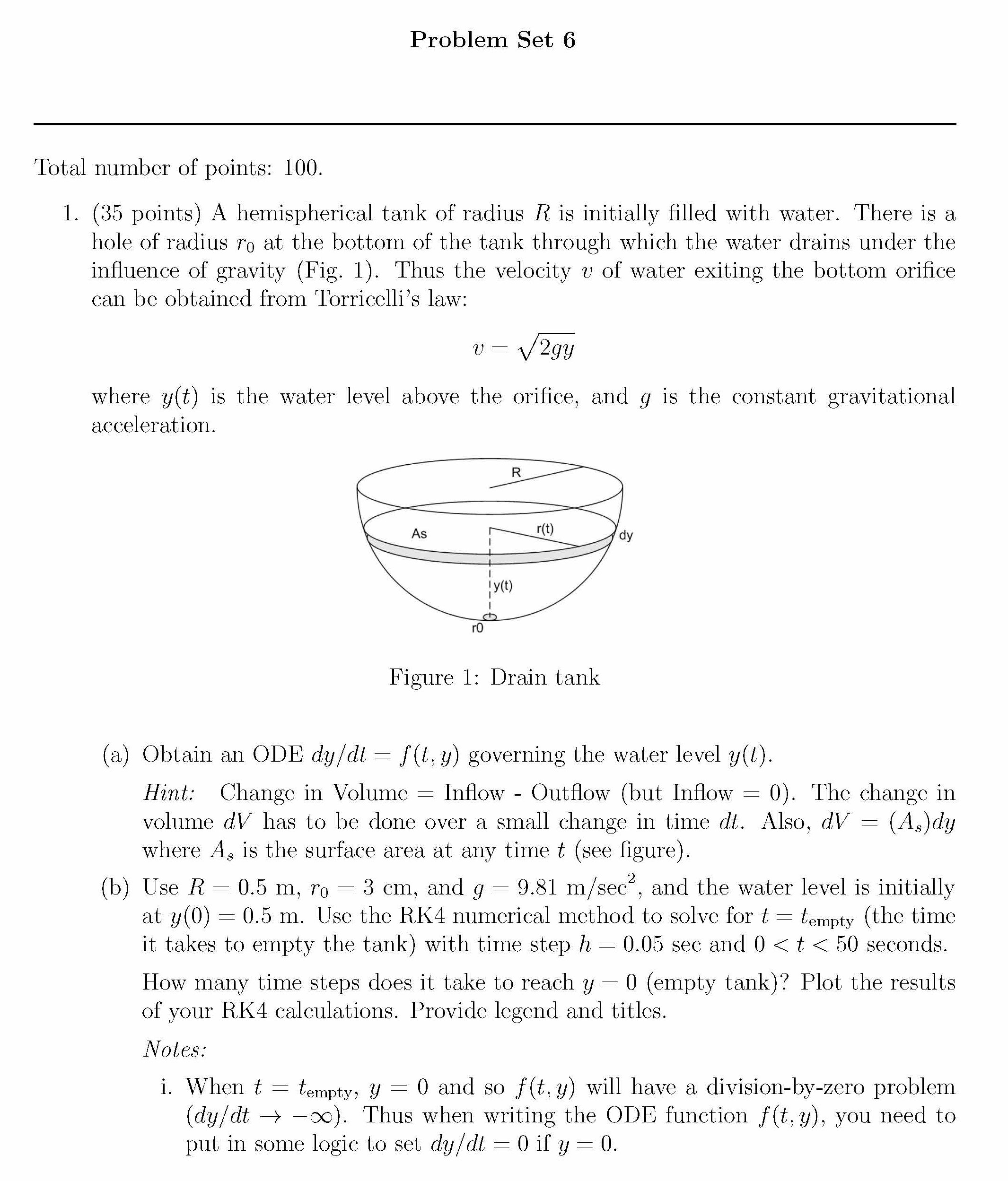 Problem Set 6 Total number of points: 100. 1. (35 points) A hem...