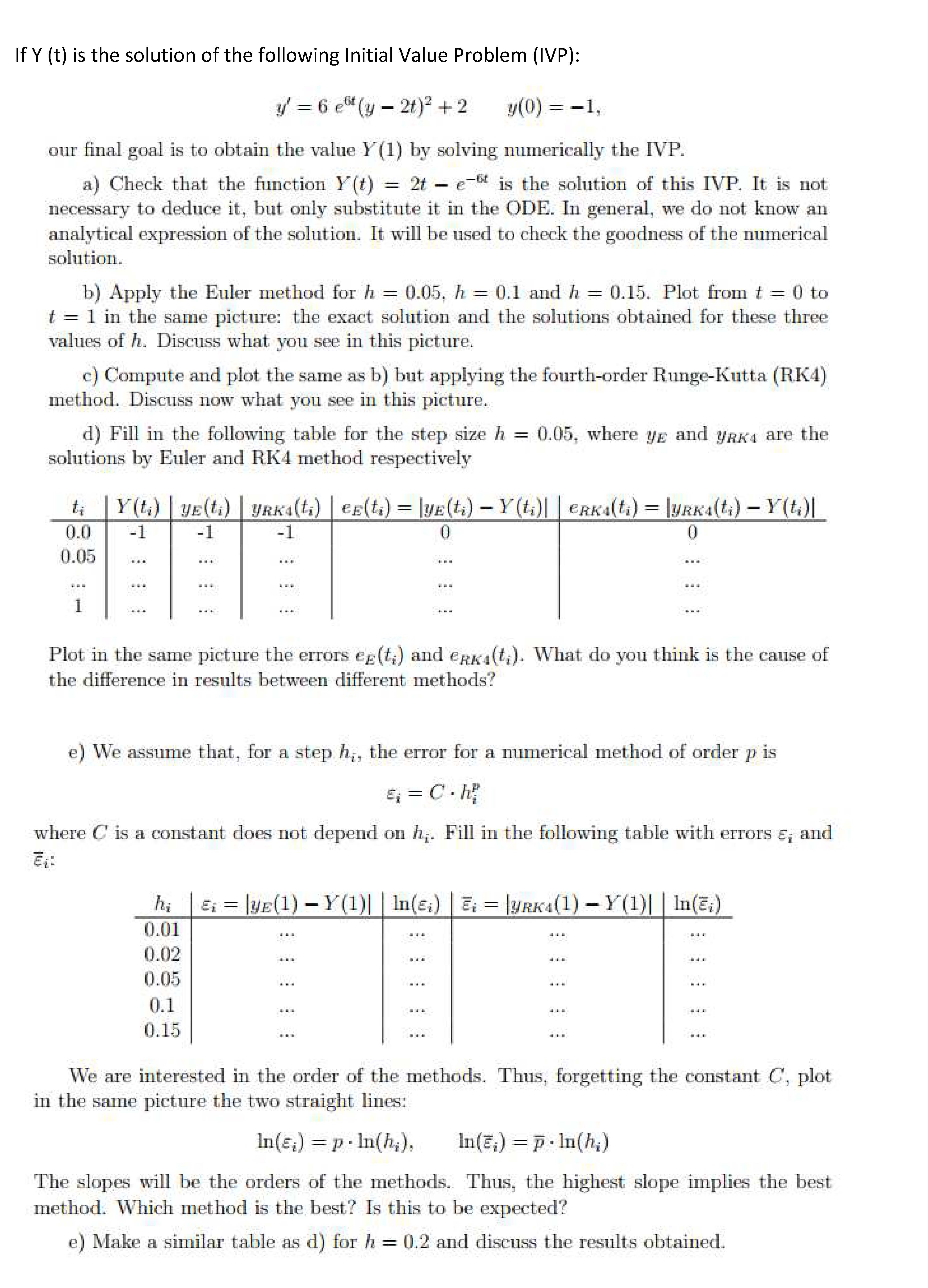 If Y (t) is the solution of the following Initial Value Problem (IV...