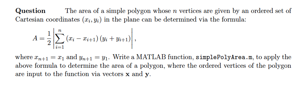 Question The area of a simple polygon whose n vertices are given b...