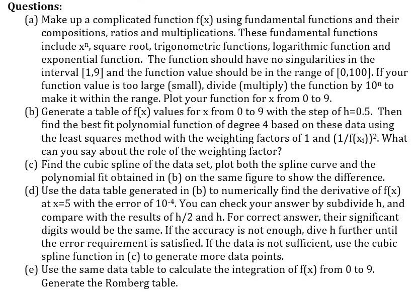 Questions: (a) Make up a complicated function f(x) using fundament...