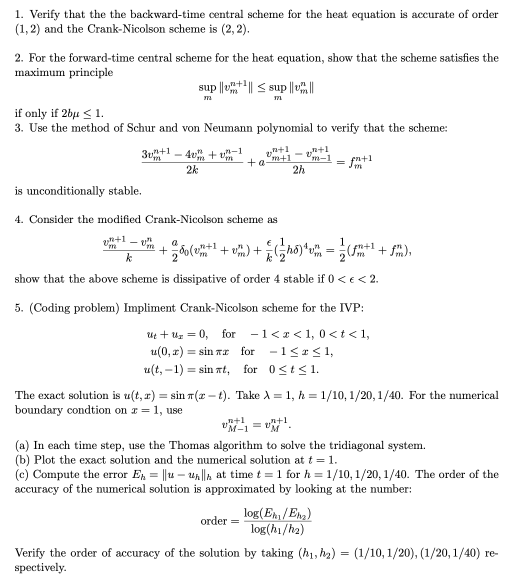 1. Verify that the the backward-time central scheme for the heat eq...