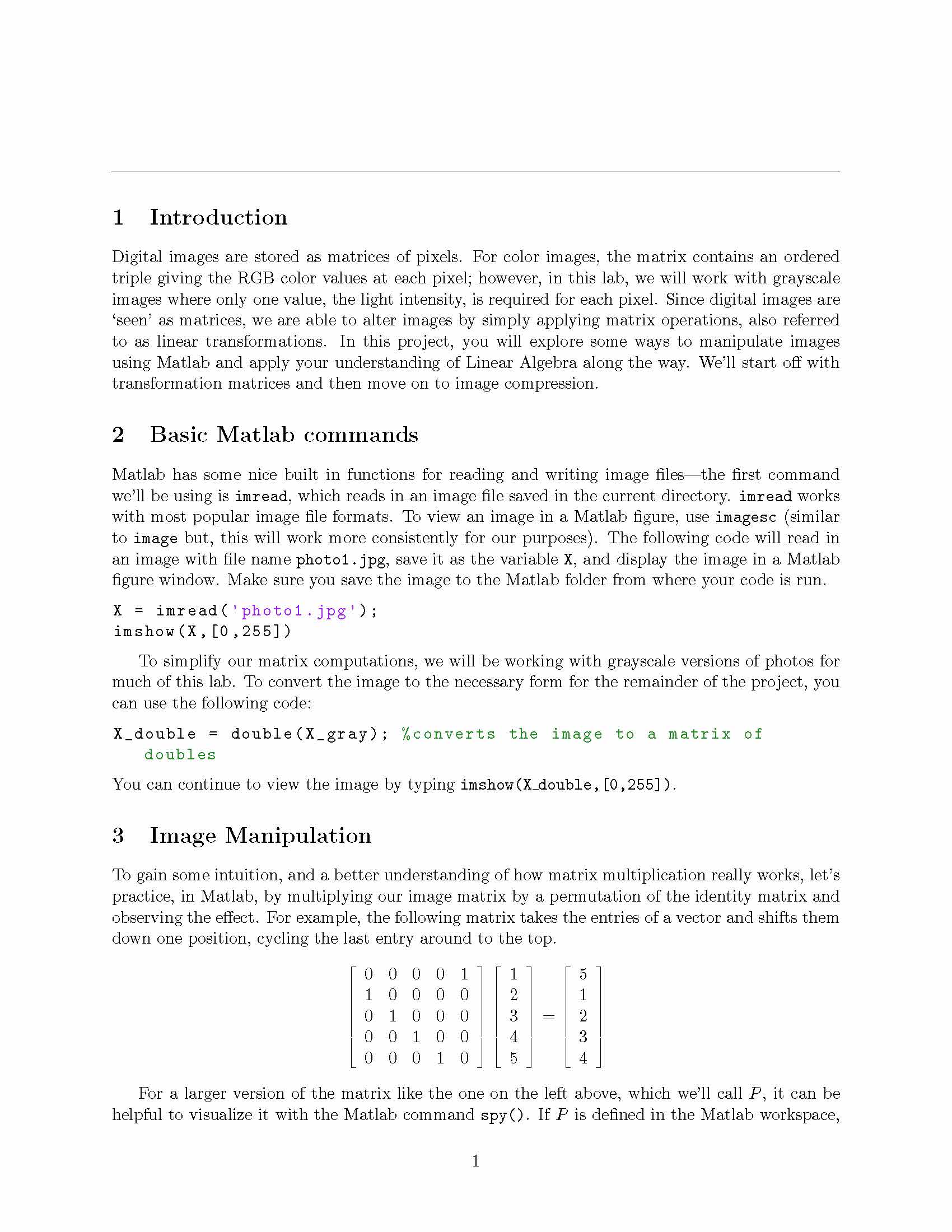 1 Introduction Digital images are stored as matrices of pixels. Fo...