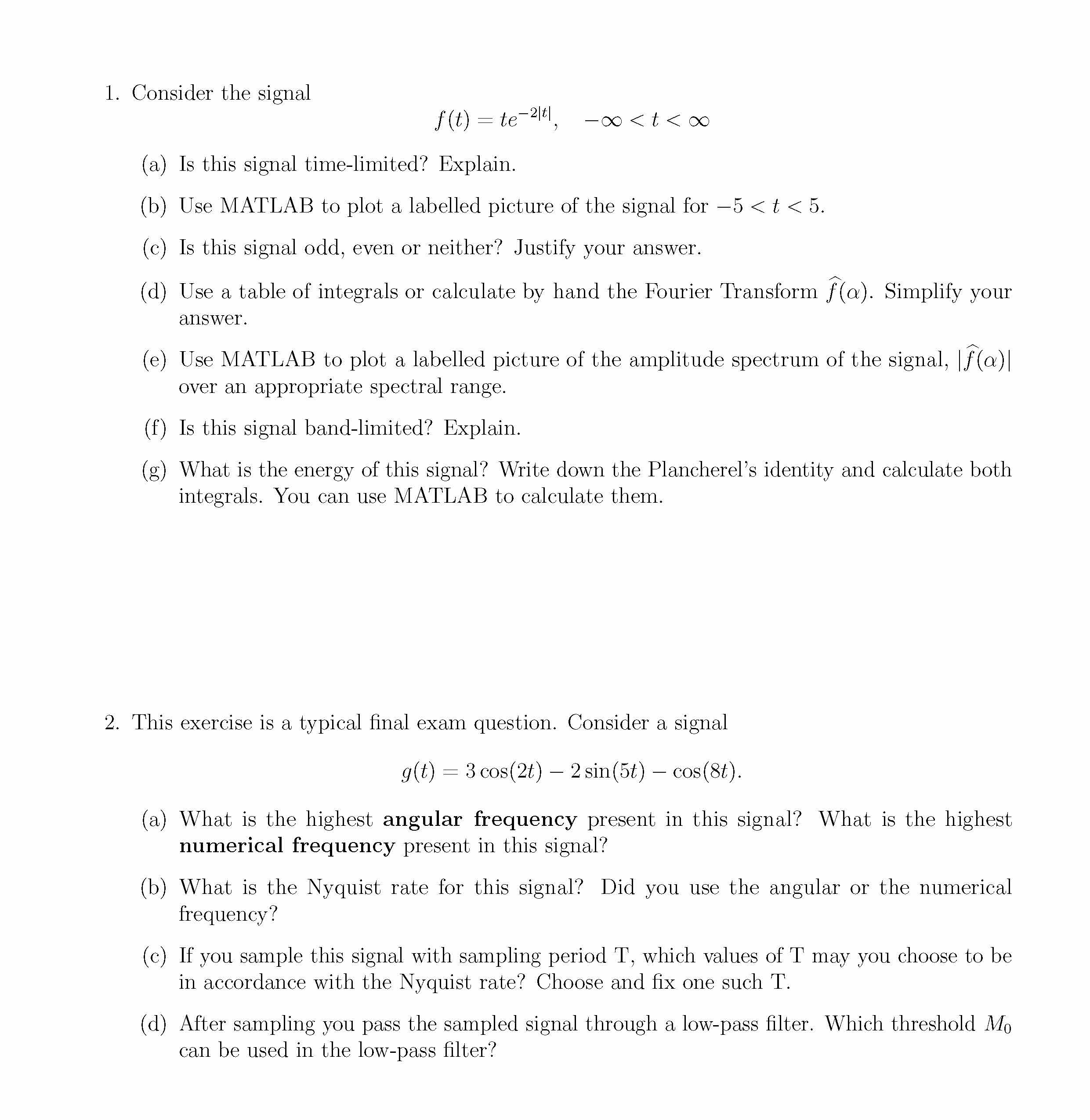 1. Consider the signal f(t) = teô€€€2jtj; ô€€€1 < t < 1 (a)...