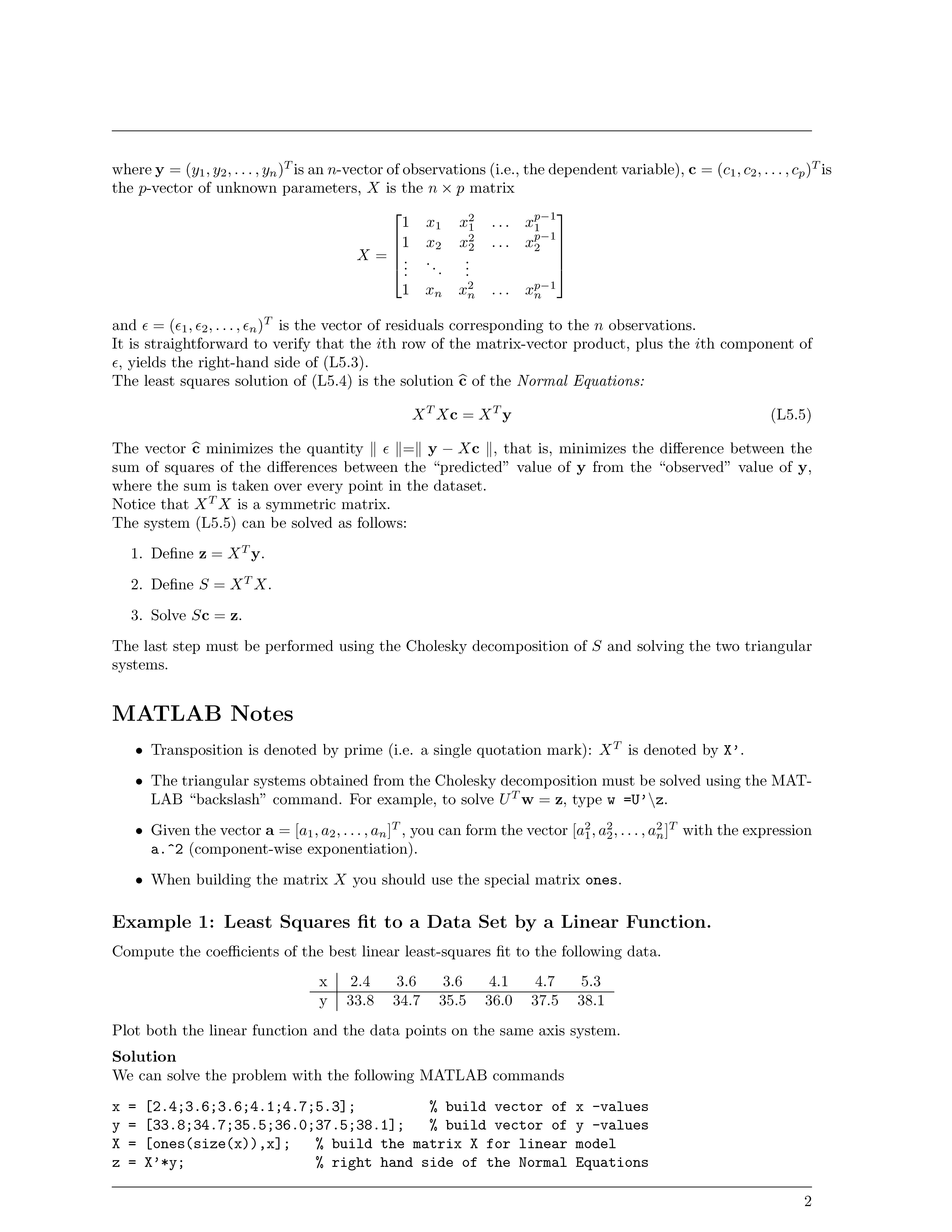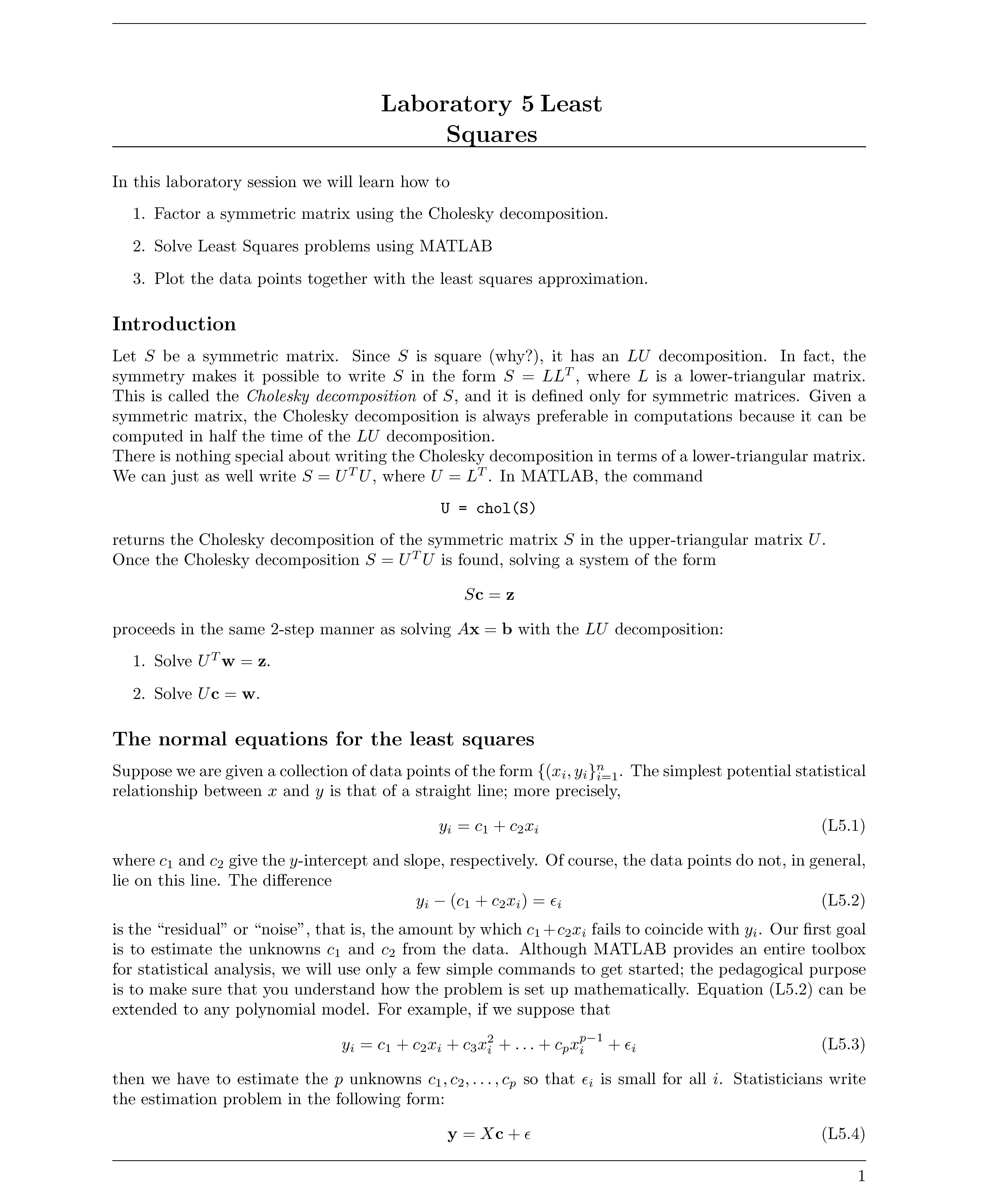 Laboratory 5 Least Squares In this laboratory session we will lear...