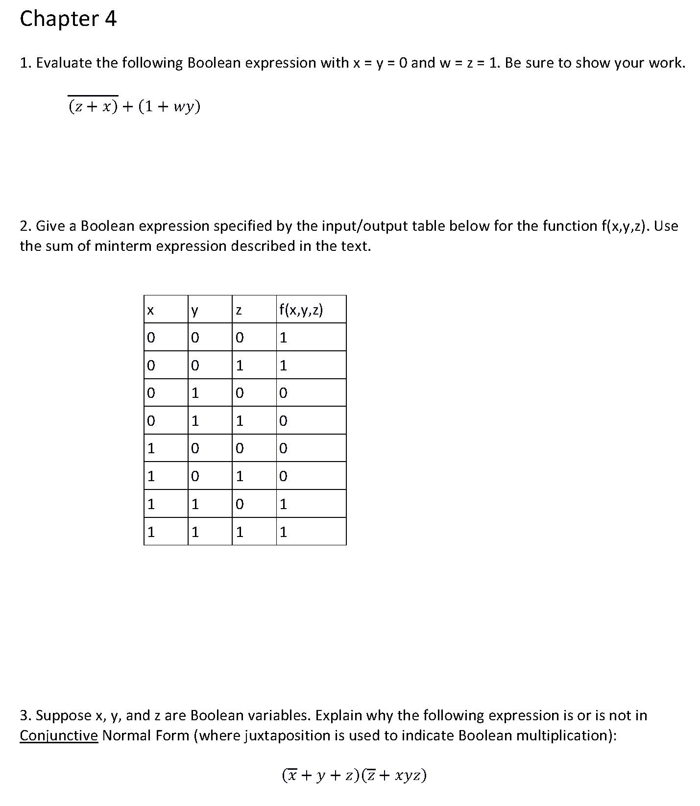 Chapter 4 1. Evaluate the following Boolean expression with x = ...