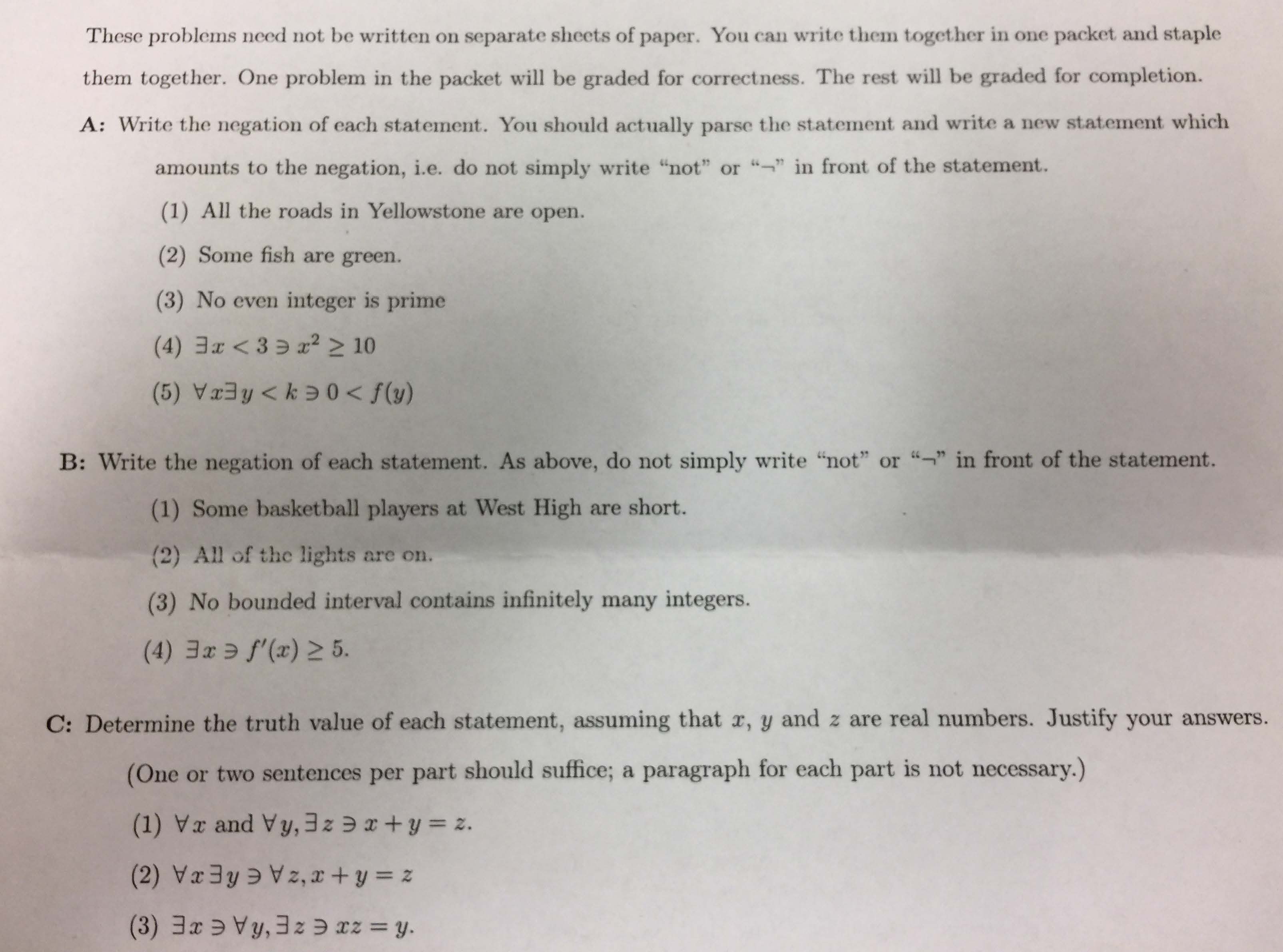 These problems need not be written on separate sheets of paper. You...