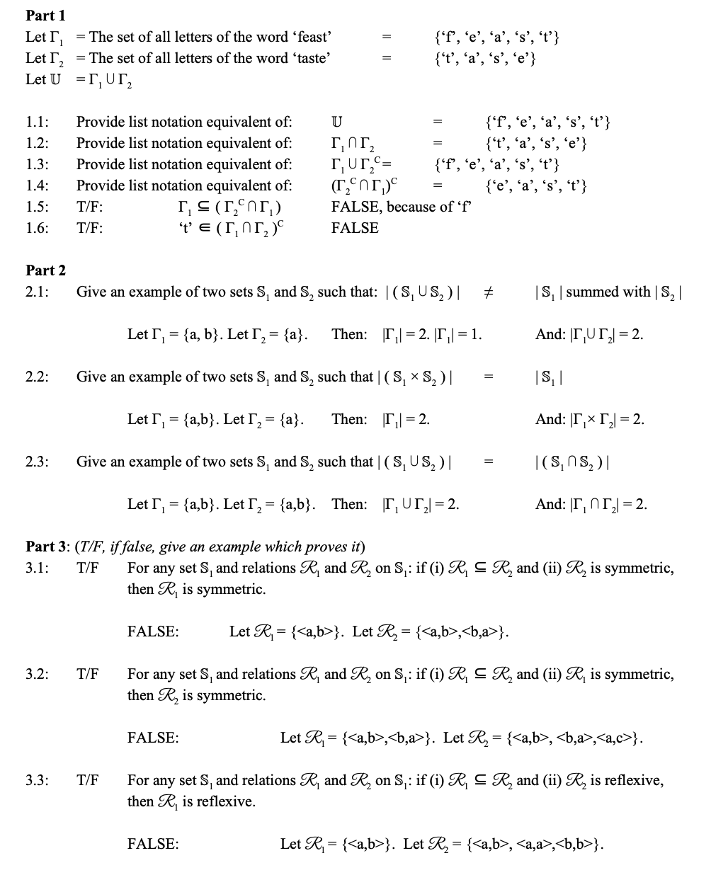 Part 1 Let = The set of all letters of the word 'feast' = {'f', ...