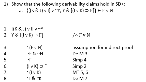 1) Show that the following derivability claims hold in SD+: a. {[(...