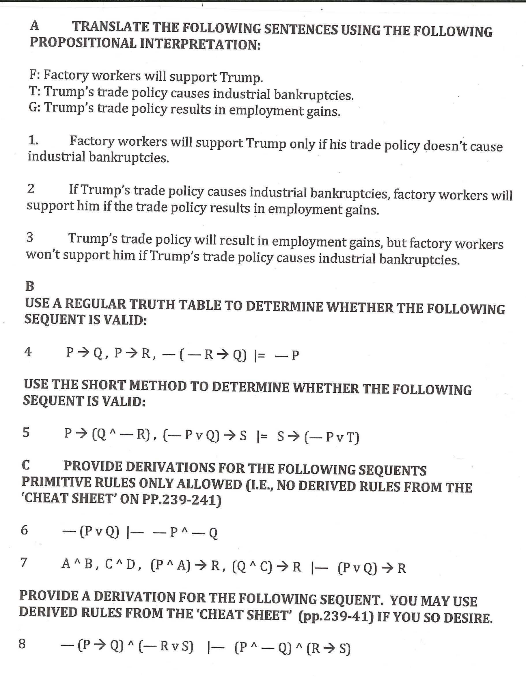 A TRANSLATE THE FOLLOWING SENTENCES USING THE FOLLOWING PROPOSITI...