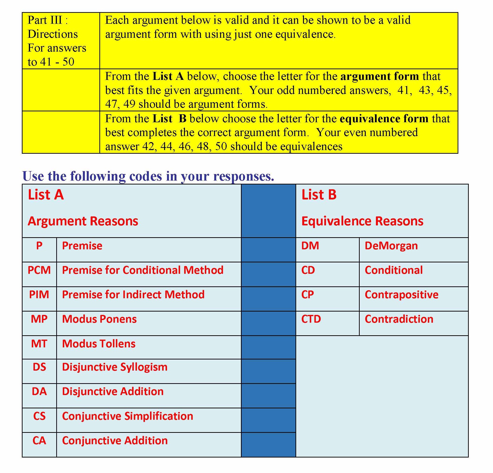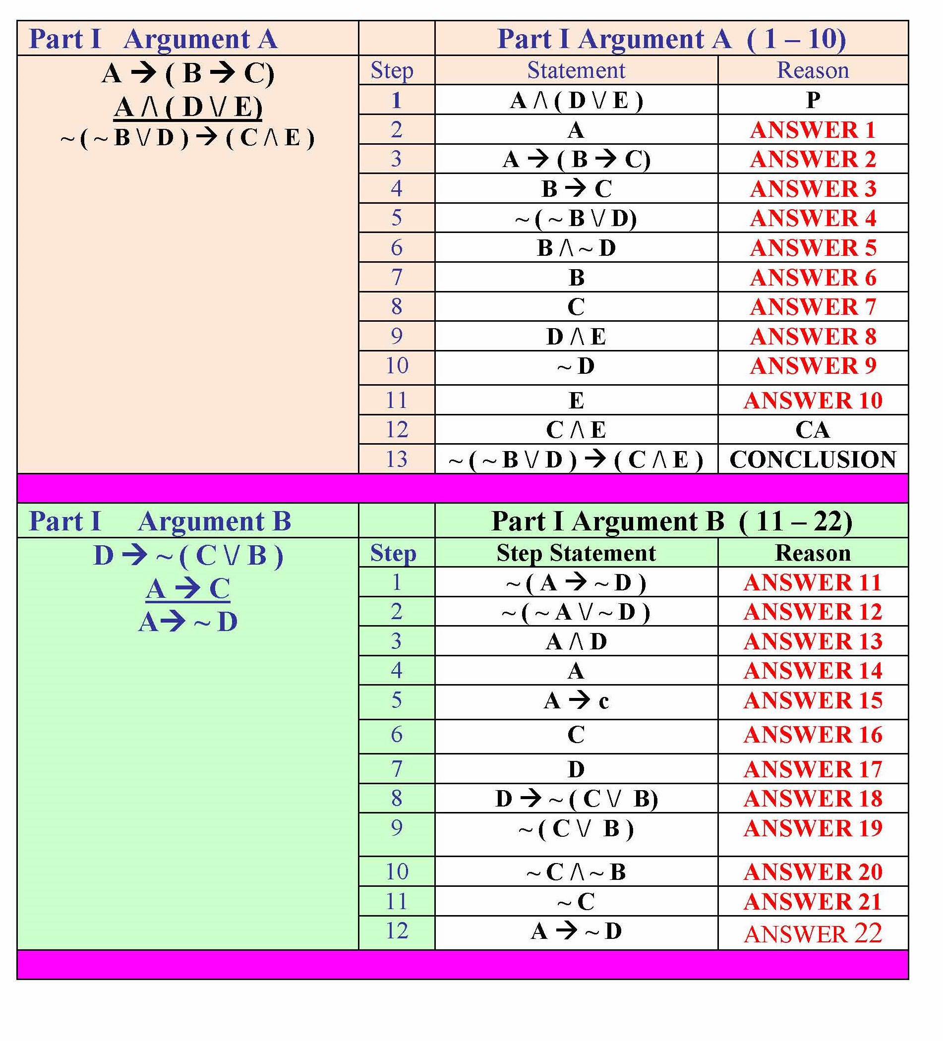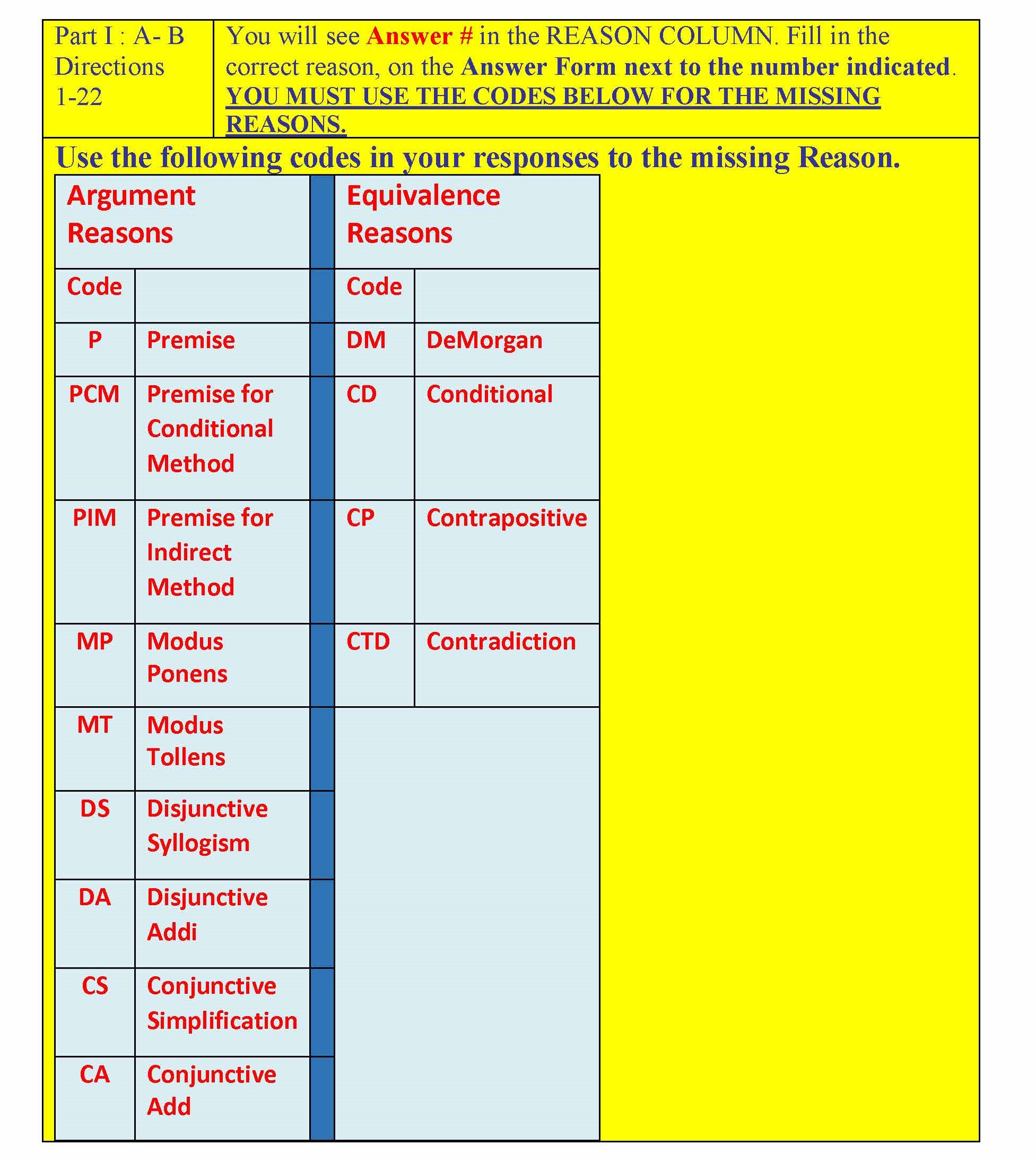 Part I : A- B Directions 1-22 You will see Answer # in the REASO...