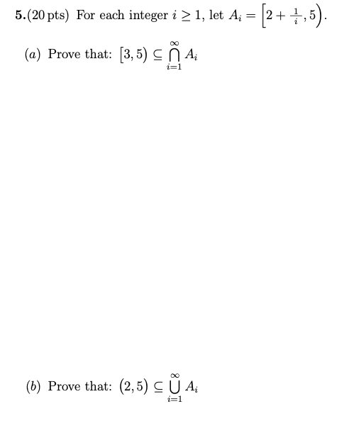 5. (20 pts) For each integer i > 1, let Ai = [2 +1,5) (a) Prove...
