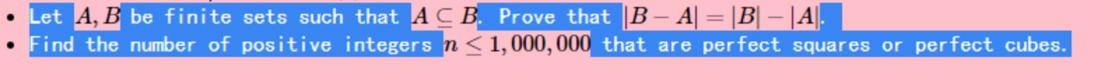 Let A,B be finite sets such that A B prove that B - A = B - A. F...